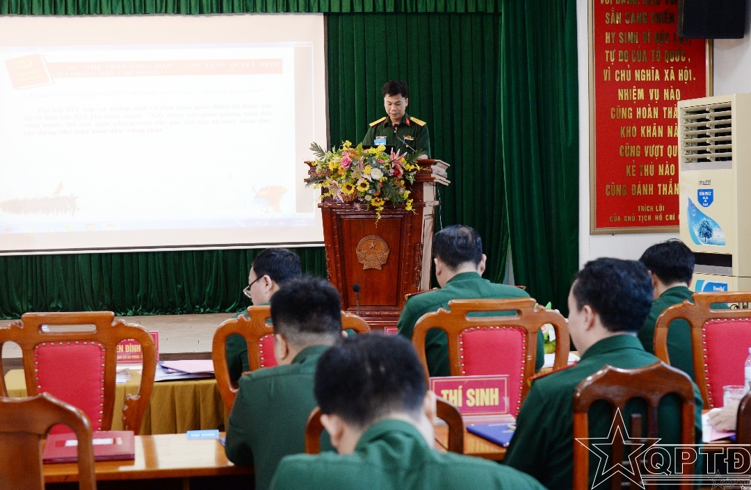 Phát biểu khai mạc Hội thi, Thượng tá Đỗ Đình Tiến, Chính ủy Ban Chỉ huy PTKV5-Thanh Oai nhấn mạnh, công tác tuyên truyền miệng đóng vai trò đặc biệt quan trọng trong công tác tư tưởng của Đảng. Đây là kênh thông tin trực tiếp, sinh động, có khả năng lan tỏa sâu rộng, góp phần truyền tải kịp thời và chính xác các đường lối, quan điểm của Đảng, chính sách, pháp luật của Nhà nước đến cán bộ, chiến sĩ. Để Hội thi đạt chất lượng, hiệu quả, Thượng tá Đỗ Đình Tiến đề nghị: Ban Tổ chức và Ban Giám khảo nêu cao tinh thần trách nhiệm, chấm thi một cách khách quan, công tâm, tuân thủ đúng quy chế. Các thí sinh cần chấp hành nghiêm quy định, giữ vững sự bình tĩnh, tự tin, vận dụng linh hoạt và sáng tạo các hình thức, phương pháp tuyên truyền để hoàn thành tốt nội dung thi…