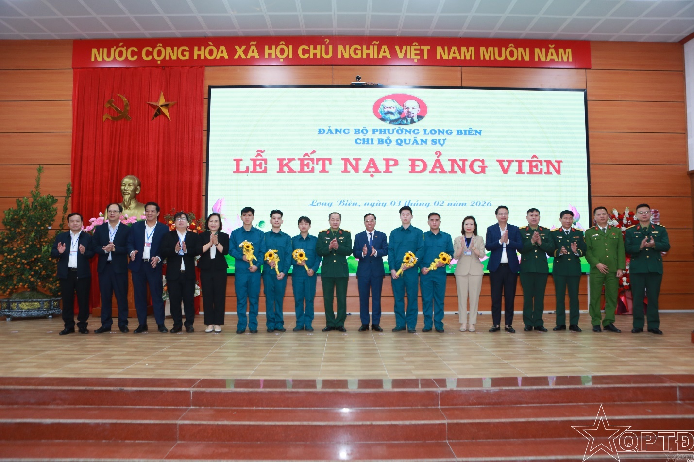 QPTĐ-Sáng 3-2, Chi bộ Quân sự phường Long Biên tổ chức Lễ kết nạp đảng viên cho 5 đồng chí quần chúng ưu tú (4 đồng chí chuẩn bị nhập ngũ năm 2026 và 1 đồng chí là Tiểu đội trưởng Tiểu đội Dân quân Thường trực phường).