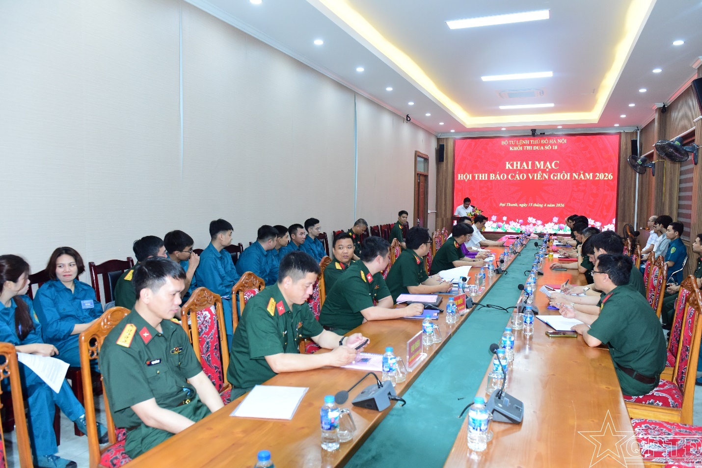 QPTĐ-Thực hiện hướng dẫn của Cục Chính trị và Bộ Tư lệnh Thủ đô Hà Nội, sáng 15/4, Khối Thi đua số 18 tổ chức Hội thi Báo cáo viên giỏi năm 2026 tại Hội trường Đảng ủy xã Đại Thanh.
