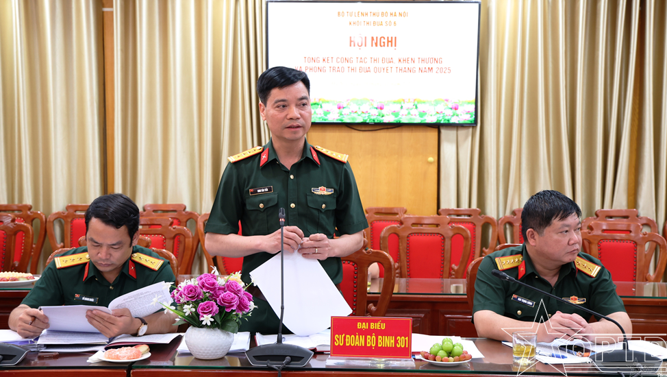 QPTĐ-Chiều 29-10, tại Sư đoàn Bộ binh 301, Khối thi đua số 6 của Bộ Tư lệnh Thủ đô Hà Nội (gồm 4 đơn vị: Trường Quân sự Bộ Tư lệnh; Sư đoàn Bộ binh 301; Công ty TNHH MTV Hà Thành; Trung đoàn Pháo binh 452) do Trường Quân sự Bộ Tư lệnh làm Khối trưởng, đã tổ chức Hội nghị Tổng kết công tác thi đua, khen thưởng và Phong trào Thi đua Quyết thắng (TĐQT) năm 2025.