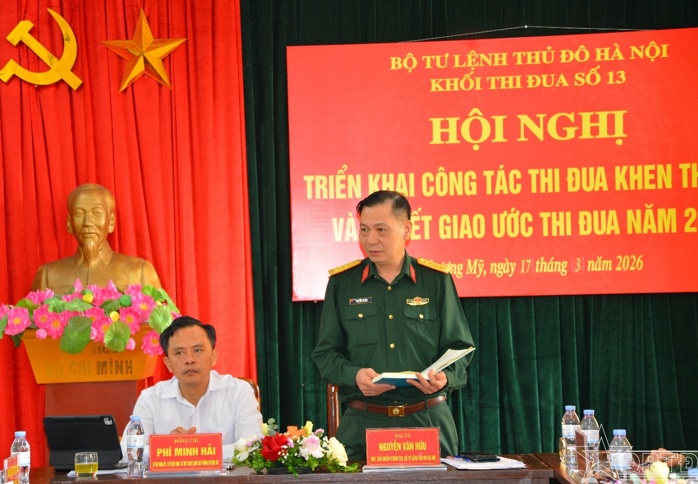 Đại tá Nguyễn Văn Hữu, Chủ nhiệm Chính trị Bộ Tư lệnh Thủ đô Hà Nội dự và chỉ đạo Hội nghị. Cùng dự có đồng chí Phí Minh Hải, Bí thư Đảng ủy, Chủ tịch HĐND phường Chương Mỹ; đại diện cấp ủy, chỉ huy các đơn vị trong Khối.