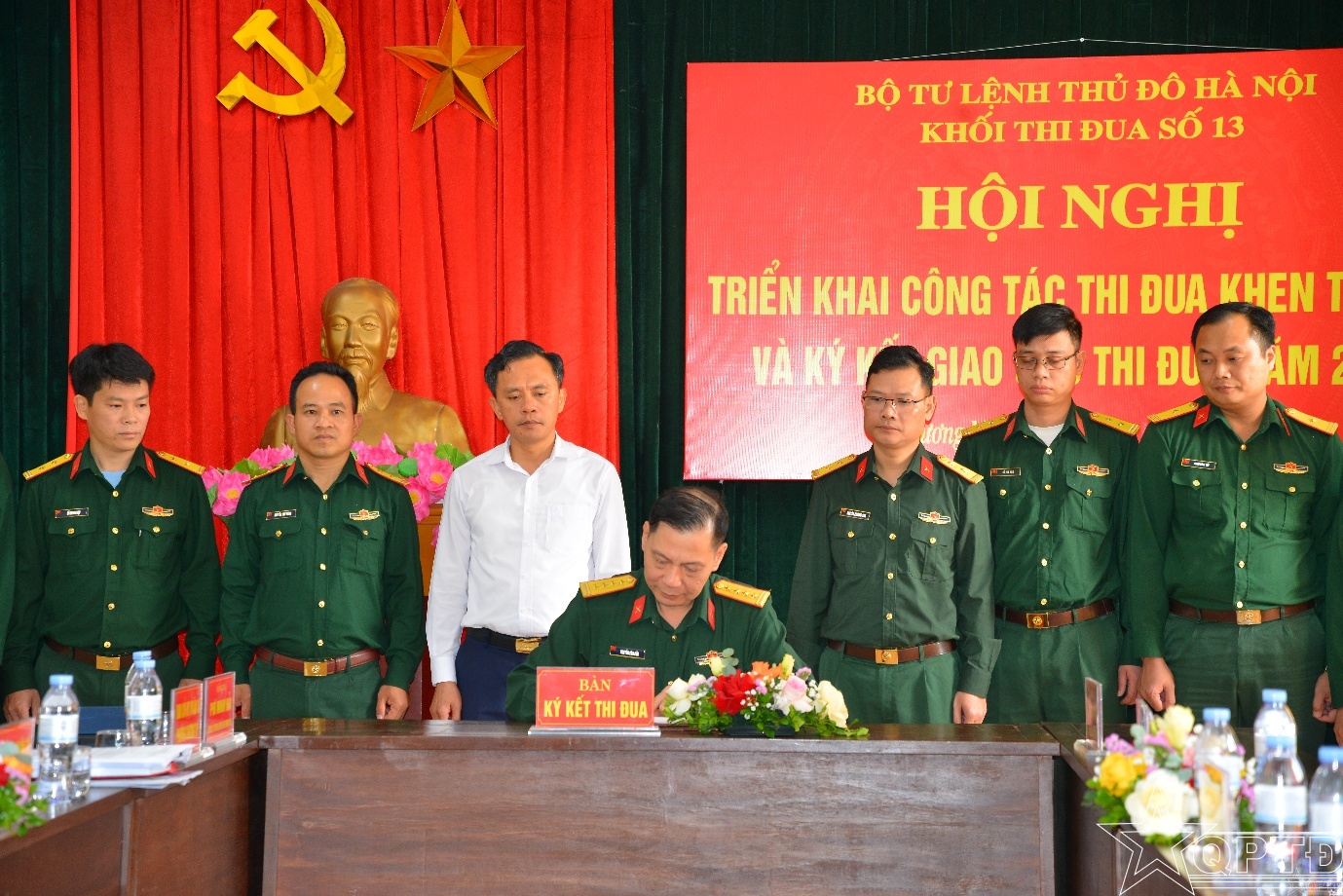 Đồng chí Chủ nhiệm Chính trị Bộ Tư lệnh Thủ đô Hà Nội ký chứng nhận các nội dung thi đua của Khối thi đua số 13.