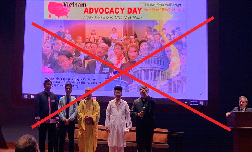 Theo chúng “buổi họp khoáng đại” có sự tham gia của nhiều vị dân biểu và Thượng nghị sĩ liên bang, đại diện nhiều tổ chức nhân quyền quốc tế, đại diện các phái đoàn đến từ các tiểu bang Hoa Kỳ và từ Canada. Đặc biệt có mặt một số đại diện các tổ chức tôn giáo đang bị bách hại tại Việt Nam. Nhưng thực chất đây là một số phần tử phản động, cơ hội chính trị ở Việt Nam và hải ngoại như Linh mục Lê Quốc Thăng, Thượng tọa Thích Vĩnh Phước, Dương Xuân Lương... cùng một số đại diện các tổ chức thiếu thiện chí đối với Việt Nam, tiêu biểu là Thượng Nghị sĩ John Cornyn, tác giả Dự luật Chế tài vì đàn áp nhân quyền ở Việt Nam; bà Gayle Manchin, Phó Chủ tịch Ủy hội Hoa Kỳ về Tự do tôn giáo Quốc tế...Tại buổi họp này, trong khi Linh mục Lê Quốc Thăng xuyên tạc Luật Tín ngưỡng, Tôn giáo thì Thượng tọa Thích Vĩnh Phước vu khống trắng trợn rằng: “44 năm qua Việt Nam chưa có tự do tôn giáo, chưa có nhân quyền cho nên mình phải trình bày để xem họ có thể giúp đỡ gì để thay đổi hiện tình đất nước. Hiện nay, tôn giáo nằm dưới sự lãnh đạo của Nhà nước Cộng sản Việt Nam. Vì thế, tôi mong muốn cần phải có những tổ chức tôn giáo độc lập”.
