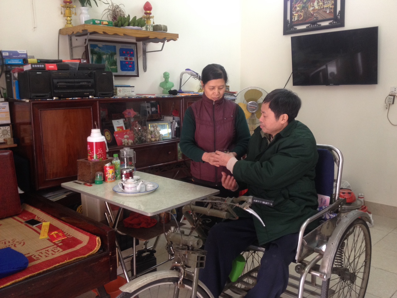 Tạm chia tay ông Tư, trao đổi với đồng chí Giám đốc Trung tâm về công tác chuẩn bị đón Tết cho TBB, chúng tôi được anh cho biết: “Theo truyền thống, đơn vị lập kế hoạch cho thông báo để toàn thể TBB, ai có nhu cầu về quê ăn Tết cùng gia đình, người thân đăng ký. Căn cứ vào số lượng các bác TBB đăng ký, đơn vị lên lịch trình xe tuyến, đưa các bác về theo kế hoạch. Năm nay, số lượng TBB ở lại đơn vị ăn Tết khoảng gần 50 bác. Trong số này, đa phần là các TBB do thương tật nặng, không thể về quê; một số không có vợ, con, không còn cha, mẹ, chỉ còn họ hàng; một số TBB có vợ hoặc chồng, con sinh sống tại đơn vị.