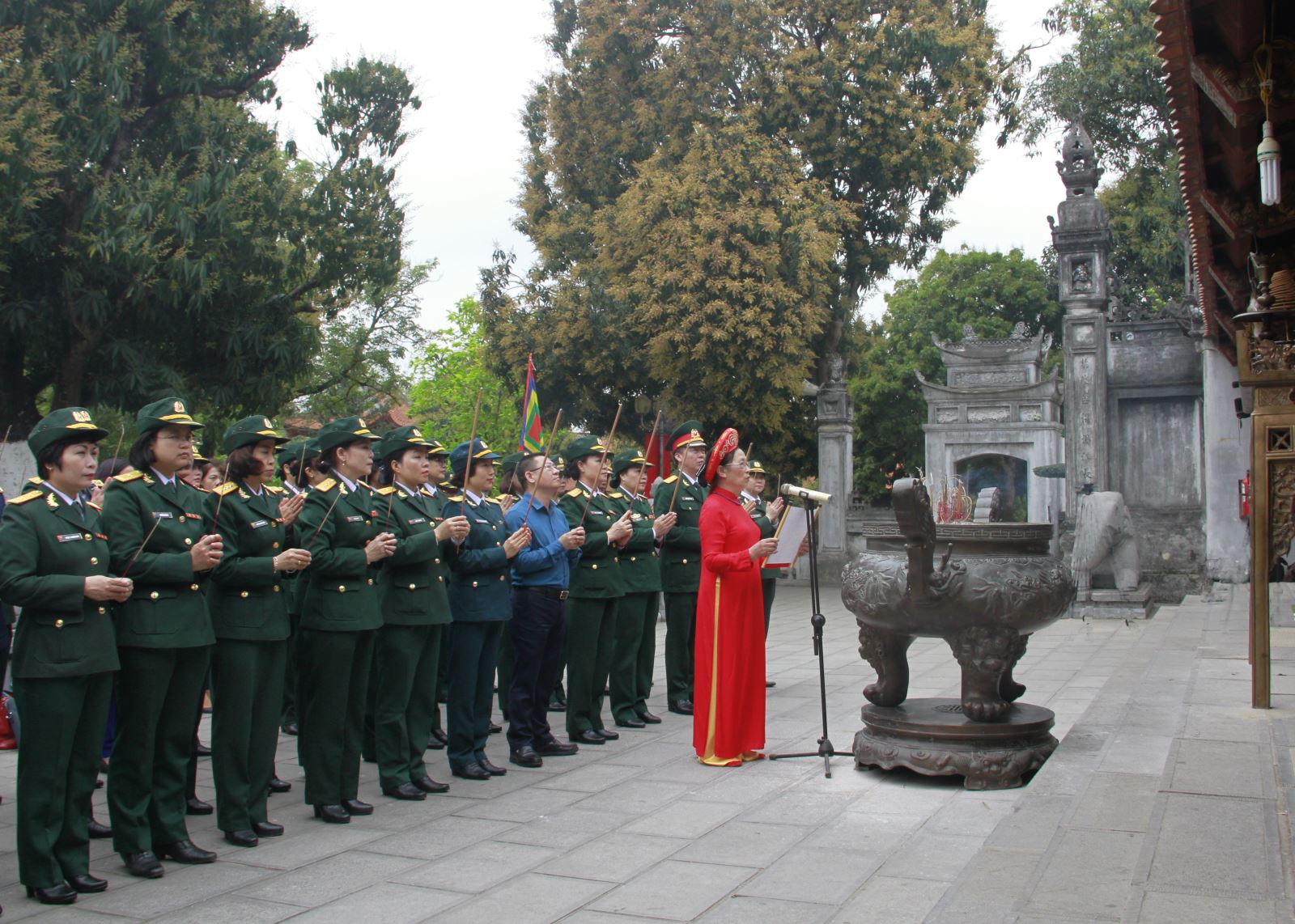 Khởi nghĩa Hai Bà Trưng (năm 40-43 sau công nguyên) đánh đuổi Tô Định (nhà Đông Hán) thắng lợi, Hai Bà Trưng lập quốc xưng vương, ghi trang sử vàng chói lọi trong lịch sử đấu tranh dựng nước và giữ nước của dân tộc Việt Nam. Với sự thành kính, Đoàn đại biểu Phụ nữ Quân đội tỏ lòng biết ơn sâu sắc đến các vị Anh hùng dân tộc có công với dân, với nước và báo cáo với các vị tiền nhân những thành tích thật tự hào trong thời gian qua của phụ nữ Quân đội.