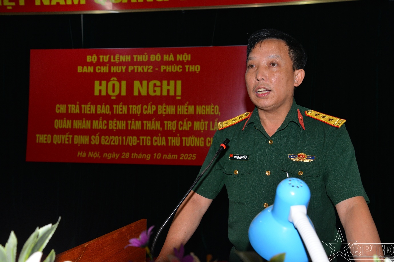 Phát biểu tại Hội nghị, Thượng tá Trần Đình Tuấn, Phó Chính ủy Ban Chỉ huy phòng thủ khu vực 2 – Phúc Thọ nhấn mạnh: “Việc chi trả chế độ, trợ cấp cho các đối tượng chính sách là một hoạt động có ý nghĩa nhân văn sâu sắc, thể hiện sự quan tâm của Đảng, Nhà nước và Quân đội đối với những người đã cống hiến, hy sinh vì sự nghiệp xây dựng và bảo vệ Tổ quốc. Đây không chỉ là trách nhiệm mà còn là tình cảm tri ân, là đạo lý "uống nước nhớ nguồn" tốt đẹp của dân tộc ta".