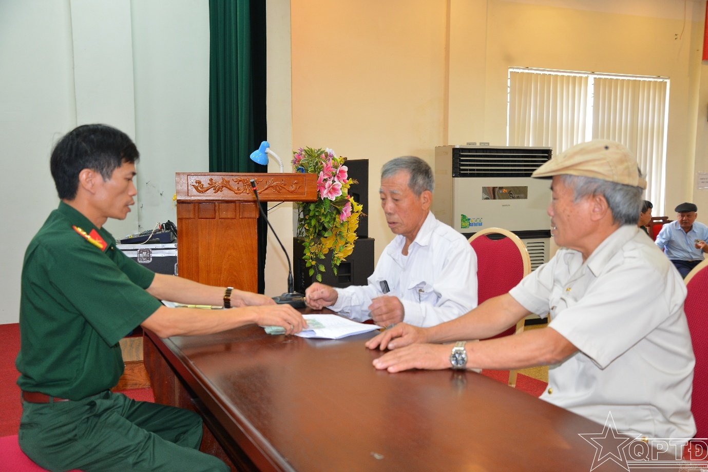 QPTĐ-Sáng ngày 29-10, Ban Chỉ huy phòng thủ khu vực 2- Phúc Thọ đã tổ chức chi trả tiền báo, tiền trợ cấp bệnh hiểm nghèo, quân nhân mắc bệnh tâm thần và trợ cấp một lần theo Quyết định số 62/2011/QĐ-TTg của Thủ tướng Chính phủ cho các đối tượng chính sách trên địa bàn.