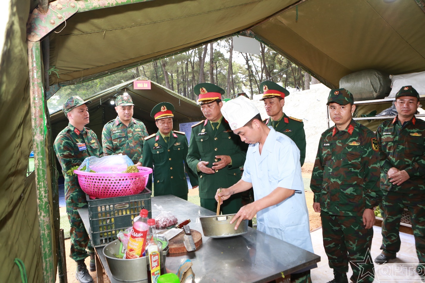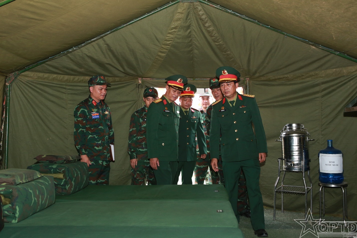 Thủ trưởng Binh chủng Công binh tham quan vị trí ăn ở của lực lượng Bộ Tư lệnh Thủ đô Hà Nội.