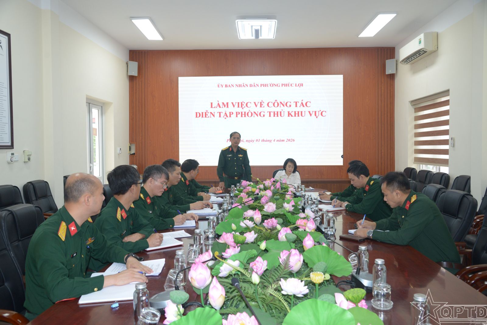 QPTĐ-Sáng 1-4, Đoàn Công tác của Bộ Tư lệnh Thủ đô Hà Nội do Đại tá Phùng Chí Cao, Phó Tham mưu trưởng Bộ Tư lệnh Thủ đô Hà Nội làm Trưởng đoàn đã có buổi làm việc với phường Phúc Lợi về nhiệm vụ diễn tập tác chiến trong KVPT năm 2026.