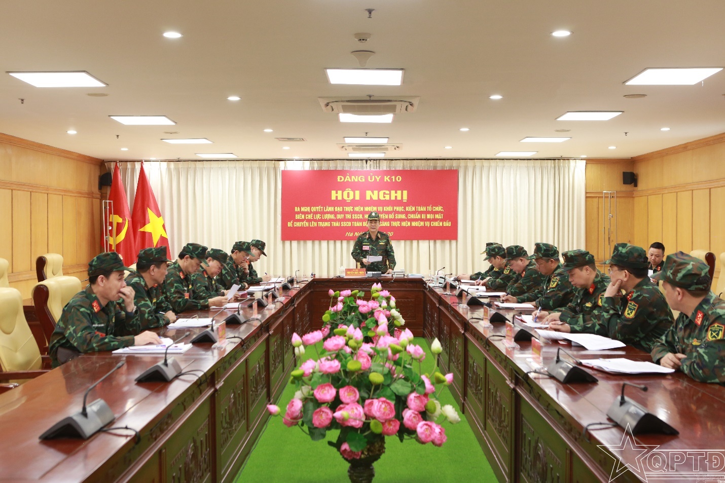 Thiếu tướng Nguyễn Khắc Nhân, Phó Chính uỷ Bộ Tư lệnh Thủ đô Hà Nội quán triệt các nội dung.
