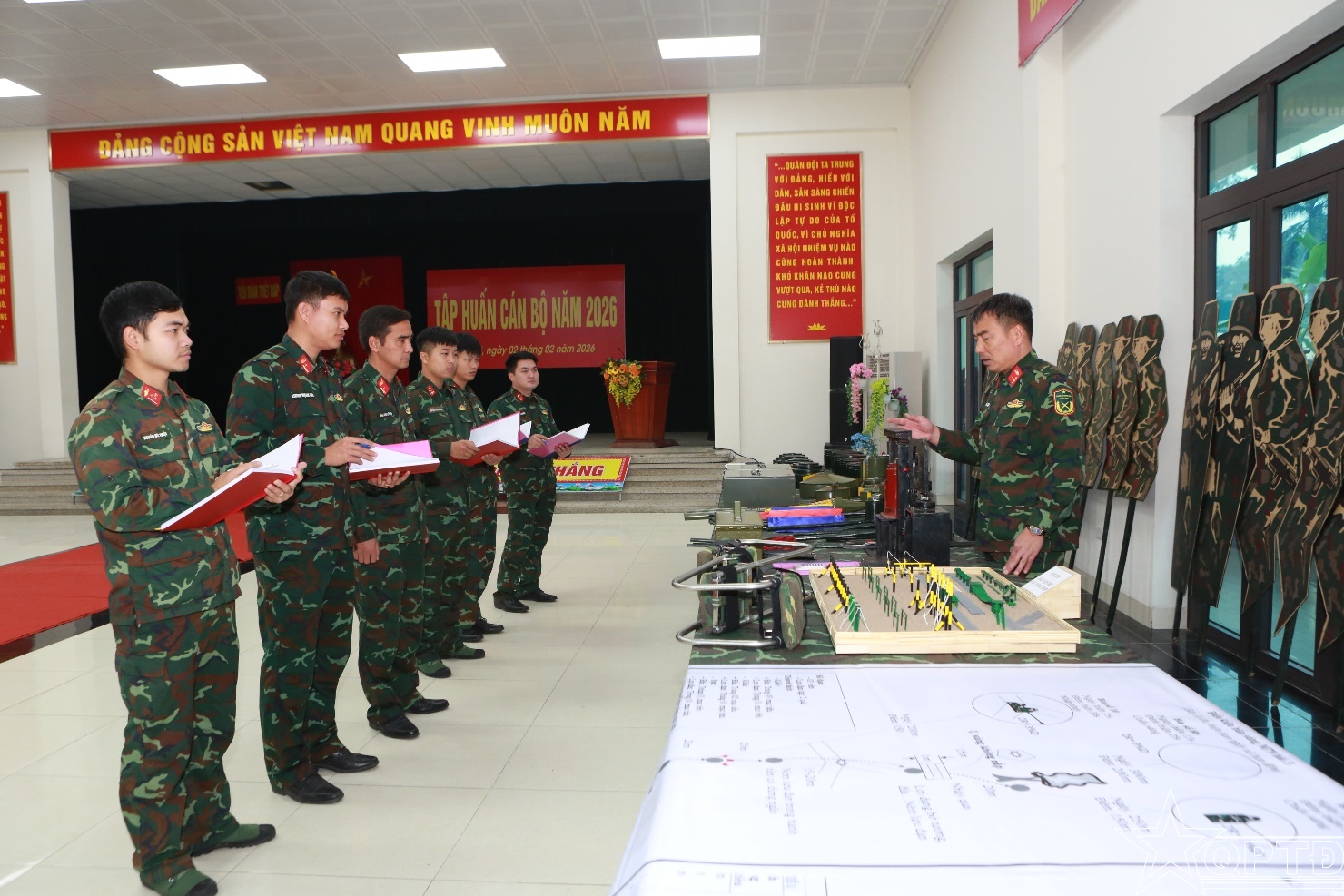 Đáng chú ý, nhiều mô hình học cụ được đơn vị phát huy nội lực, tự nghiên cứu, sáng tạo, cải tiến từ vật liệu sẵn có để áp dụng vào trong huấn luyện. Song song với việc chuẩn bị mô hình học cụ, đội ngũ cán bộ các cấp cũng tích cực hoàn chỉnh giáo án, bài giảng, tổ chức thông qua, rút kinh nghiệm chặt chẽ. Các buổi sinh hoạt chuyên môn, trao đổi phương pháp huấn luyện được duy trì nghiêm túc, nhằm thống nhất nội dung, nâng cao trình độ sư phạm quân sự, đáp ứng yêu cầu huấn luyện trong tình hình mới.