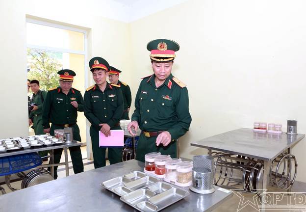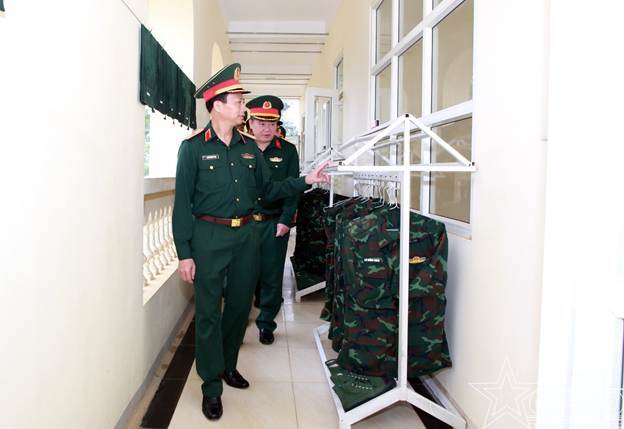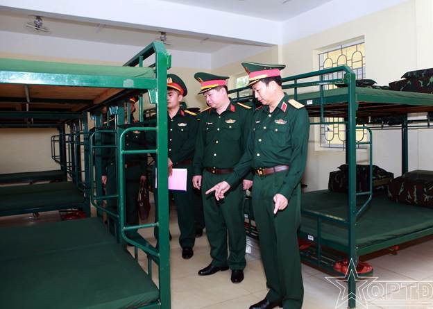 Kiểm tra nơi ăn ở, sinh hoạt của chiến sĩ mới.