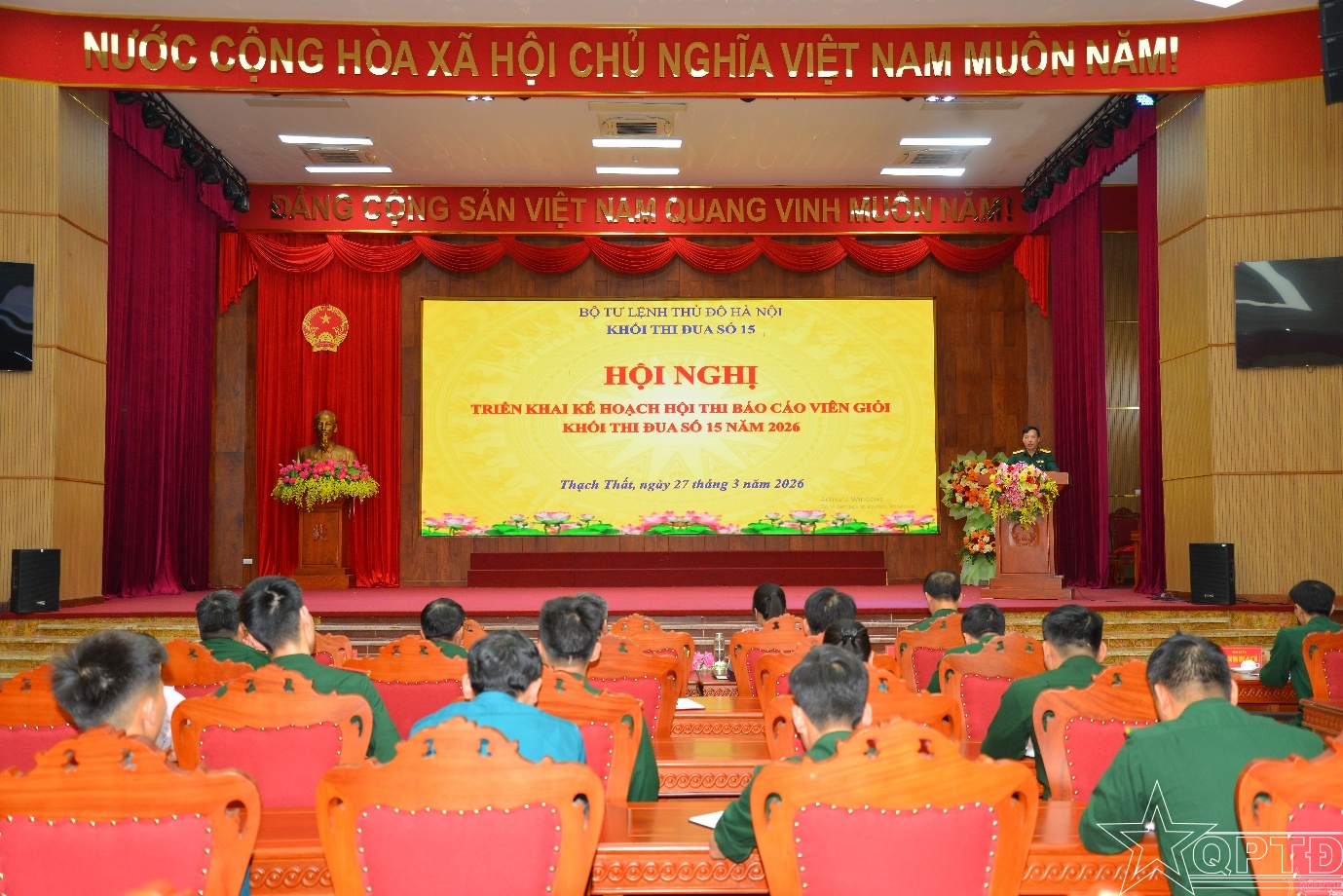 QPTĐ-Chiều 27/3, Khối thi đua số 15 Bộ Tư lệnh Thủ đô Hà Nội gồm 9 Ban CHQS xã: Thạch Thất, Phúc Thọ, Hạ Bằng, Hòa Lạc, Phúc Lộc, Yên Xuân, Đoài Phương, Yên Bài và Ba Vì đã tổ chức Hội nghị triển khai kế hoạch Hội thi Báo cáo viên giỏi năm 2026.