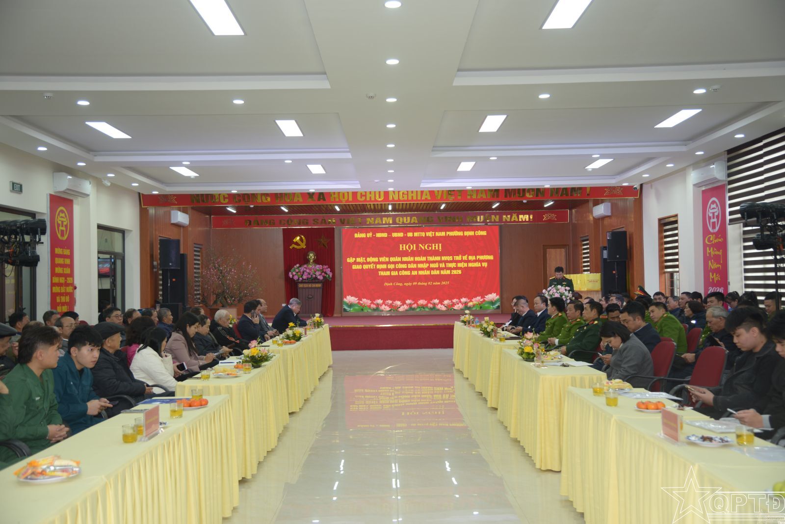 QPTĐ-Chiều 9-2, phường Định Công đã tổ chức Hội nghị gặp mặt, động viên quân nhân hoàn thành nghĩa vụ quân sự trở về địa phương; giao quyết định gọi công dân nhập ngũ và thực hiện nghĩa vụ tham gia Công an nhân dân năm 2026.