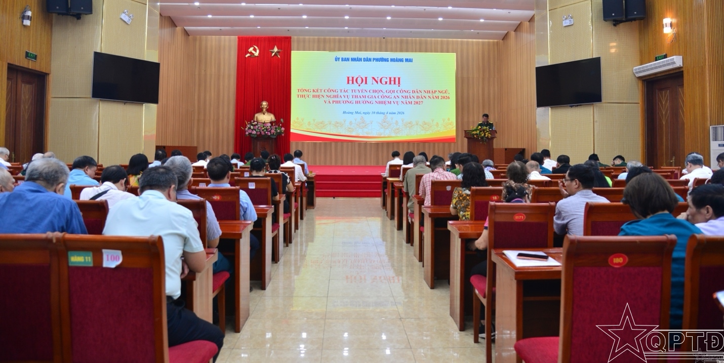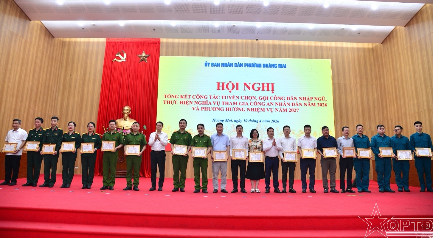QPTĐ-Sáng 10-4, UBND phường Hoàng Mai đã tổ chức hội nghị tổng kết công tác tuyển chọn, gọi công dân nhập ngũ và thực hiện nghĩa vụ tham gia Công an nhân dân năm 2026.
