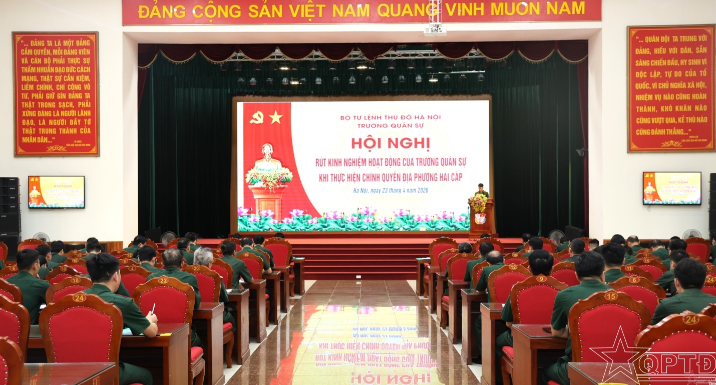 QPTĐ-Chiều 23-4, Trường Quân sự Bộ Tư lệnh Thủ đô Hà Nội đã tổ chức hội nghị rút kinh nghiệm hoạt động của Trường Quân sự khi thực hiện chính quyền địa phương hai cấp. Thiếu tướng Nguyễn Đình Thạo, Phó Tư lệnh kiêm Tham mưu trưởng Bộ Tư lệnh Thủ đô Hà Nội dự và phát biểu chỉ đạo hội nghị.