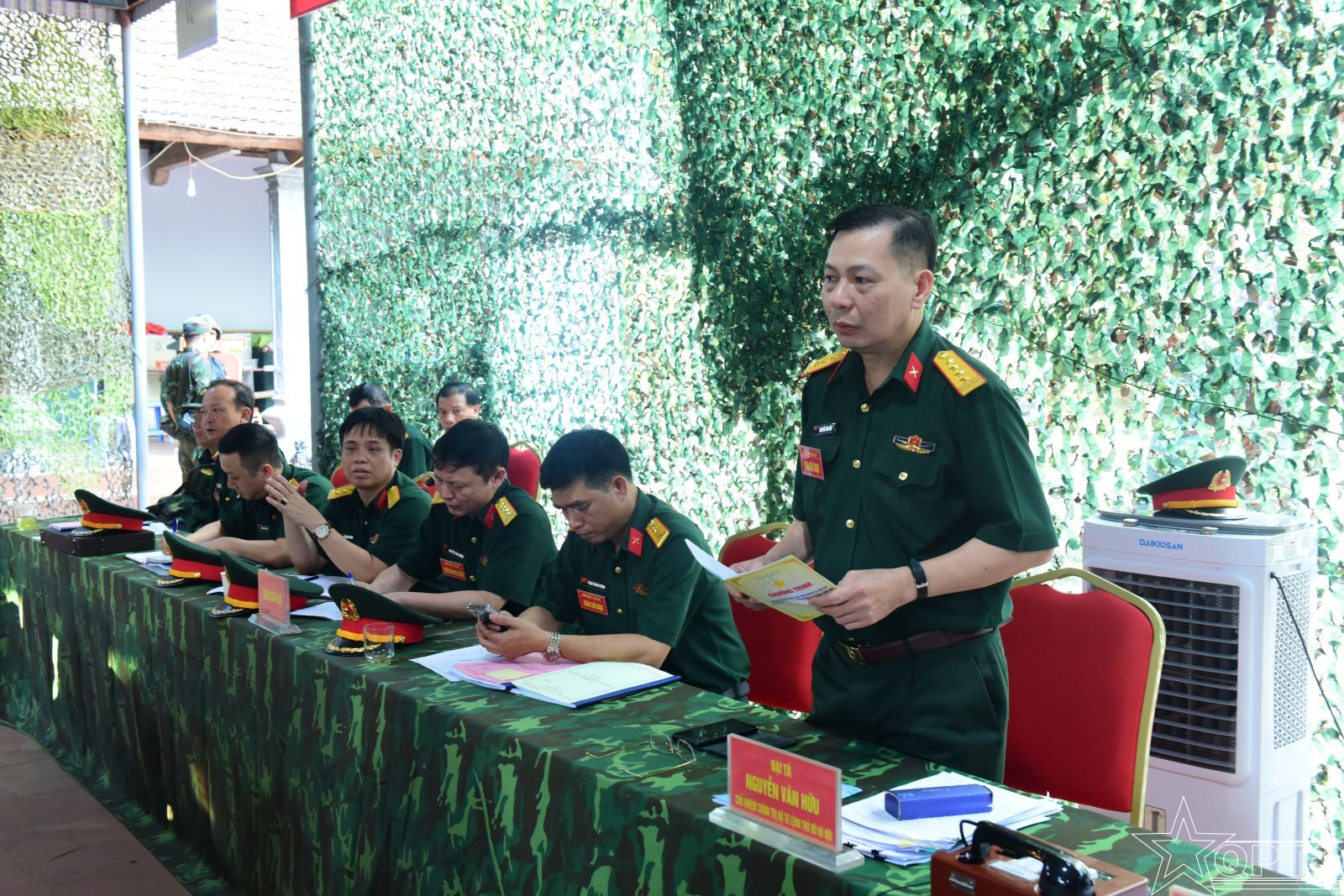 Đại tá Nguyễn Văn Hữu, Chủ nhiệm Chính trị Bộ Tư lệnh Thủ đô Hà Nội nhận xét nội dung diễn tập.