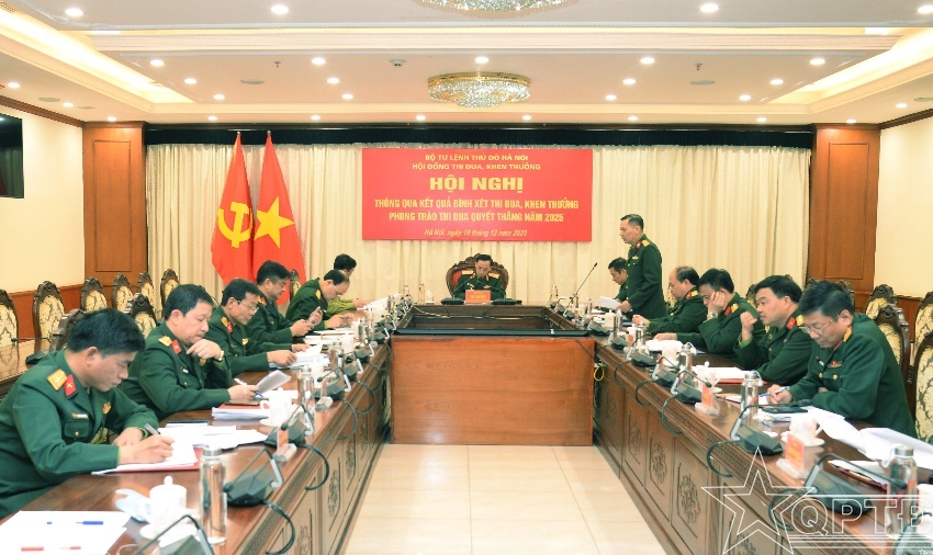 Tại hội nghị, Hội đồng Thi đua-Khen thưởng Bộ Tư lệnh Thủ đô Hà Nội đã nghe cơ quan thường trực báo cáo kết quả rà soát, thẩm định kết quả thực hiện nhiệm vụ của các tập thể, cá nhân được đề nghị khen thưởng năm 2025. Theo đó, các cơ quan, đơn vị, cán bộ, chiến sĩ lực lượng vũ trang Thủ đô đã quán triệt, thực hiện có hiệu quả Phong trào Thi đua Quyết thắng và đạt được nhiều kết quả nổi bật như: Hoàn thành tốt nhiệm vụ huấn luyện sẵn sàng chiến đấu; làm tốt công tác phòng, chống thiên tai, tìm kiếm cứu hộ, cứu nạn; hoàn thành tốt nhiệm vụ tham gia và phục vụ lễ diễu binh, diễu hành dịp kỷ niệm 80 năm Cách mạng Tháng Tám thành công và Quốc khánh nước Cộng hòa xã hội chủ nghĩa Việt Nam. Các cơ quan, đơn vị tích cực tham gia các hoạt động thi đua, nâng cao chất lượng huấn luyện, bảo đảm sẵn sàng chiến đấu. Công tác thi đua, khen thưởng được tăng cường, qua đó thúc đẩy cán bộ, chiến sĩ không ngừng rèn luyện, hoàn thành xuất sắc nhiệm vụ quân sự, quốc phòng của Thủ đô.