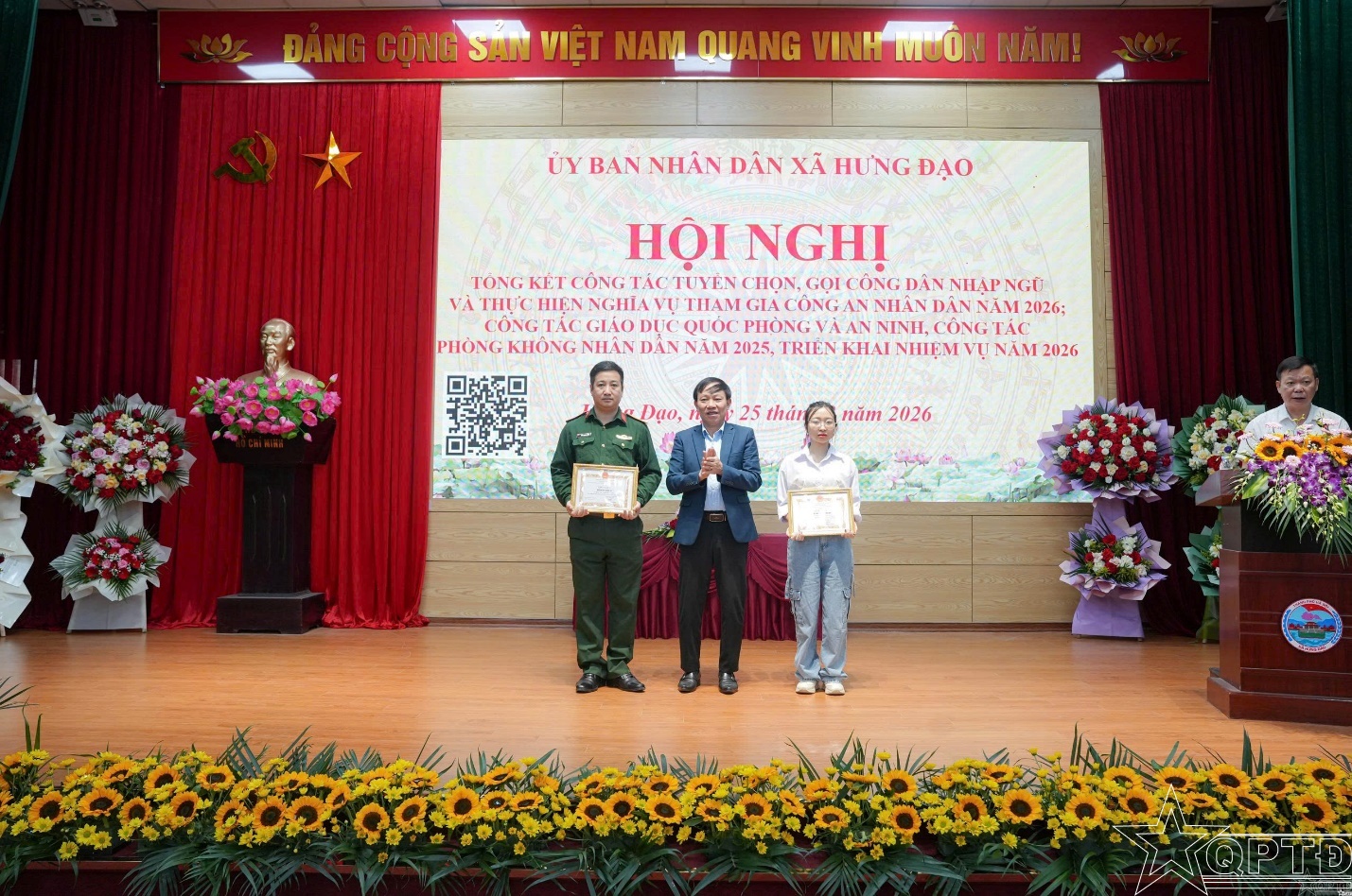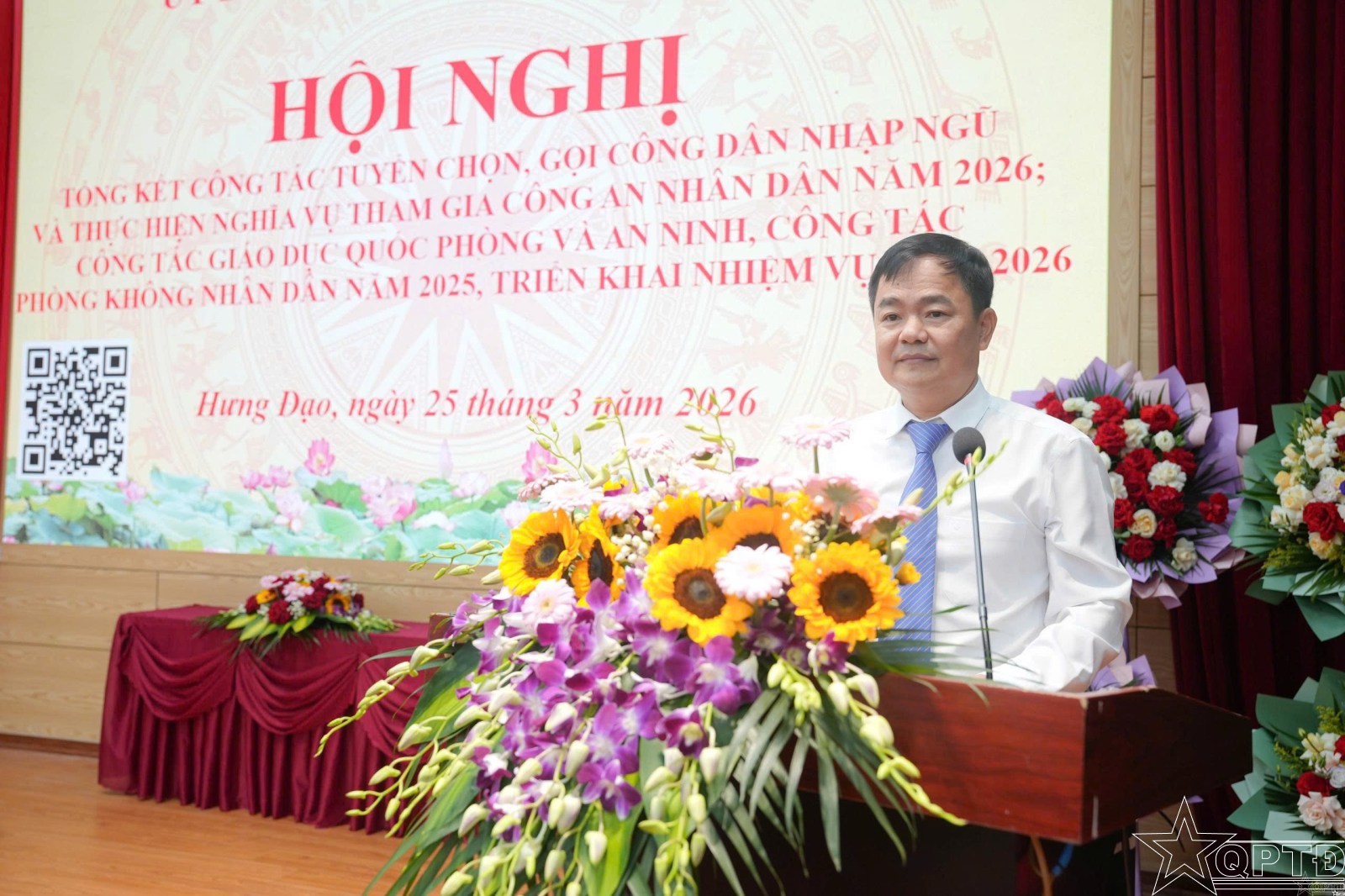 QPTĐ-Sáng 25/3/2026, UBND xã Hưng Đạo tổ chức tổng kết công tác tuyển chọn, gọi công dân nhập ngũ và thực hiện nghĩa vụ tham gia Công an nhân dân năm 2026; tổng kết công tác giáo dục quốc phòng và an ninh, công tác phòng không nhân dân năm 2025, triển khai nhiệm vụ năm 2026.