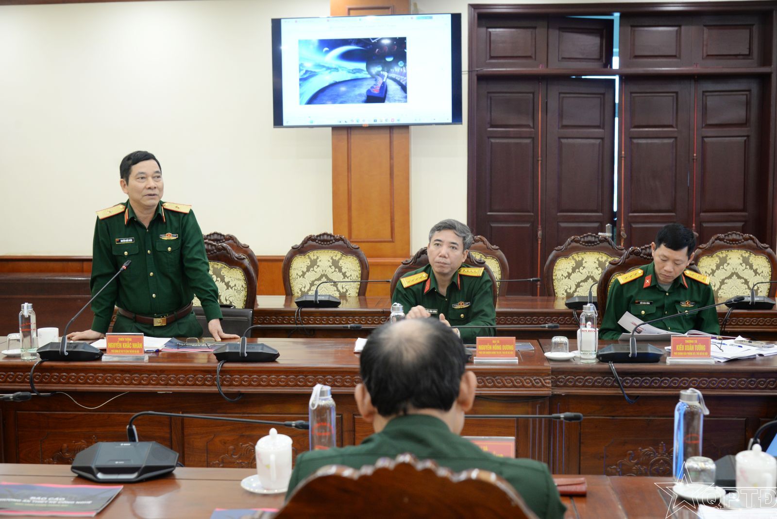 QPTĐ-Sáng 17-3, Thiếu tướng Lưu Nam Tiến, Thành ủy viên, Phó Bí thư Thường trực Đảng ủy, Chính ủy Bộ Tư lệnh Thủ đô Hà Nội đã chủ trì buổi làm việc với Cục Chính trị về nội dung thông qua báo cáo phương án thiết kế công nghệ tại Bảo tàng Chiến thắng B-52.