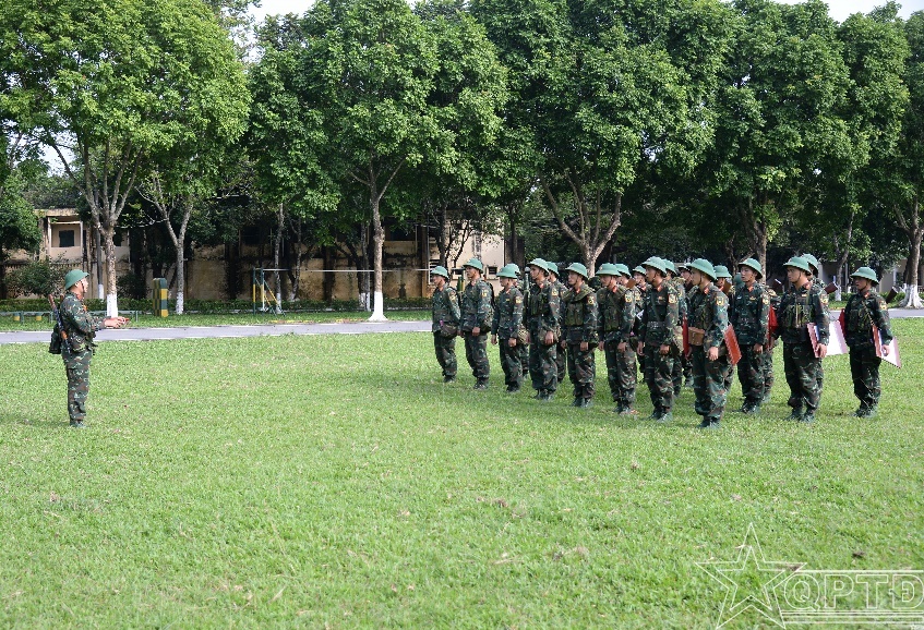 Kiểm tra cán bộ Tiểu đoàn bồi dưỡng phương pháp huấn luyện.