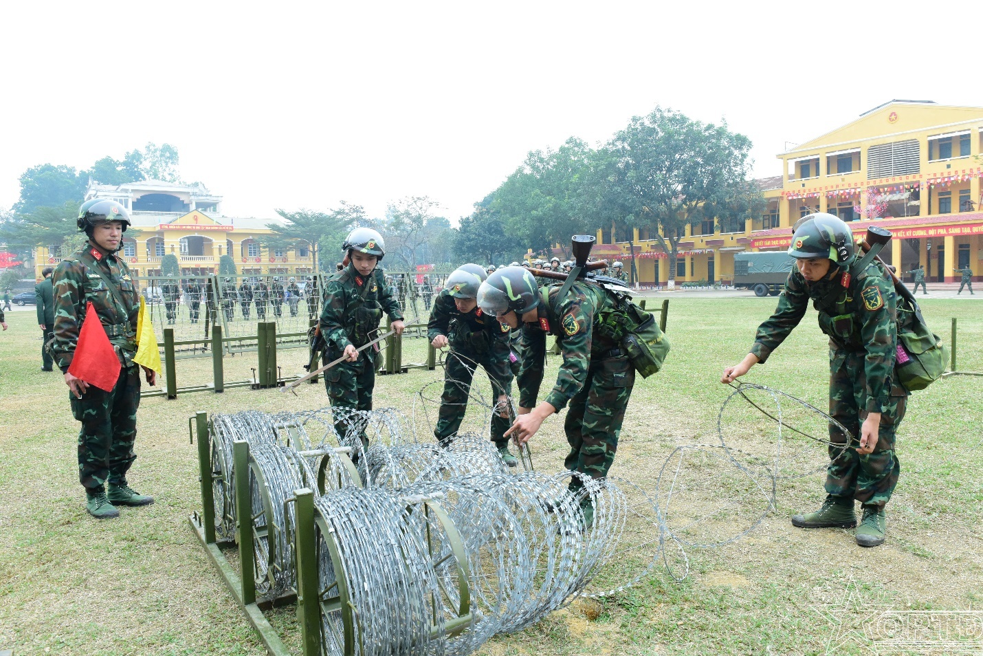 Huấn luyện rải dây thép gai.