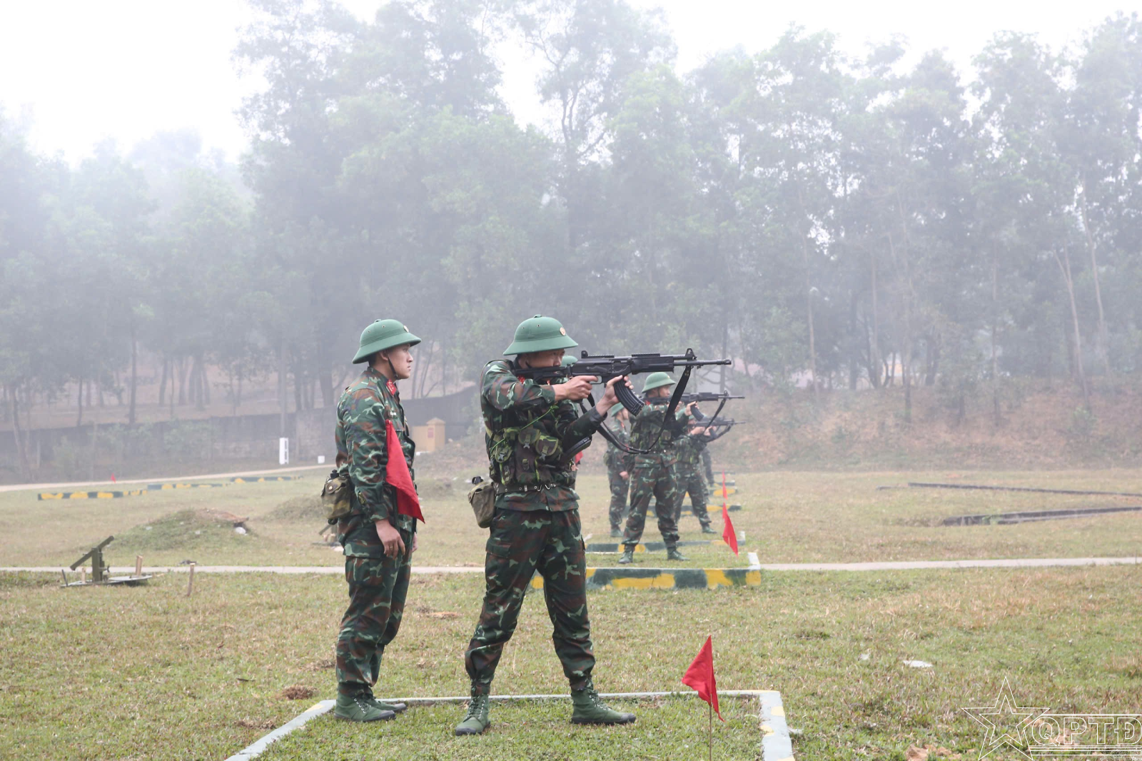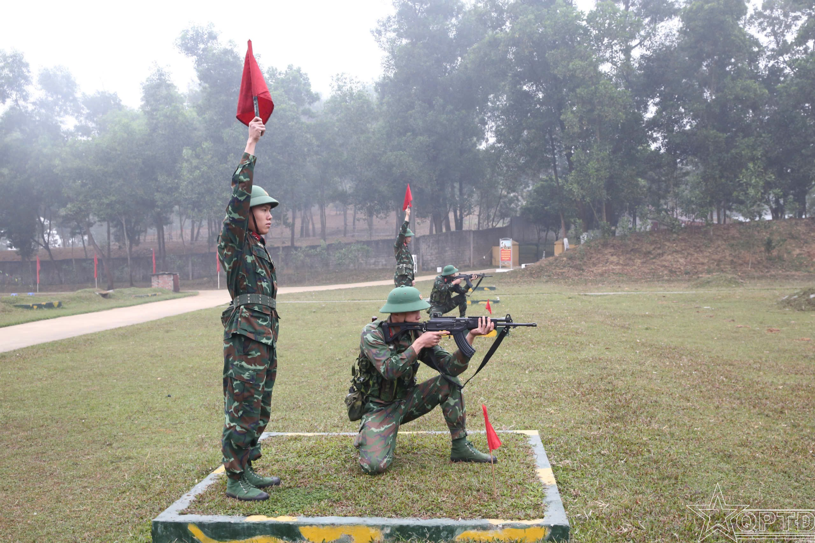 Huấn luyện động tác quỳ bắn với súng STV-380.
