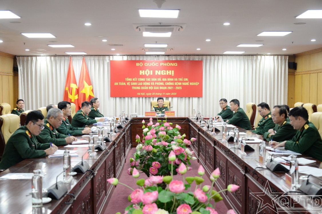 QPTĐ-Chiều 28-11, Bộ Quốc phòng tổ chức Hội nghị tổng kết công tác dân số, gia đình và trẻ em; an toàn, vệ sinh lao động và phòng, chống bệnh nghề nghiệp trong Quân đội giai đoạn 2021-2025 theo hình thức trực tiếp kết hợp trực tuyến, kết nối từ điểm cầu trung tâm Cục Quân y (Tổng cục Hậu cần - Kỹ thuật) với 109 điểm cầu trong toàn quân, trong đó có Bộ Tư lệnh Thủ đô Hà Nội.