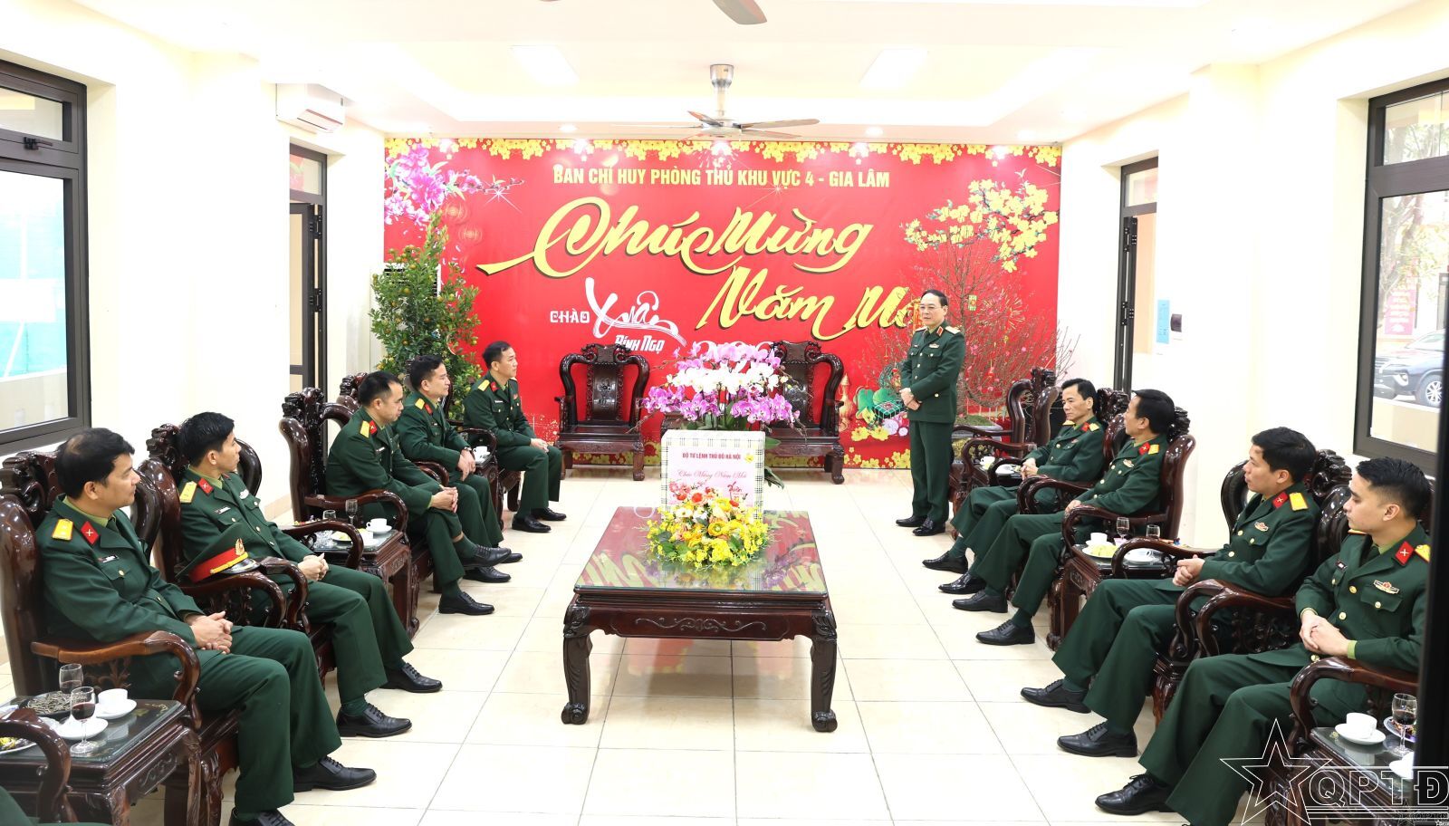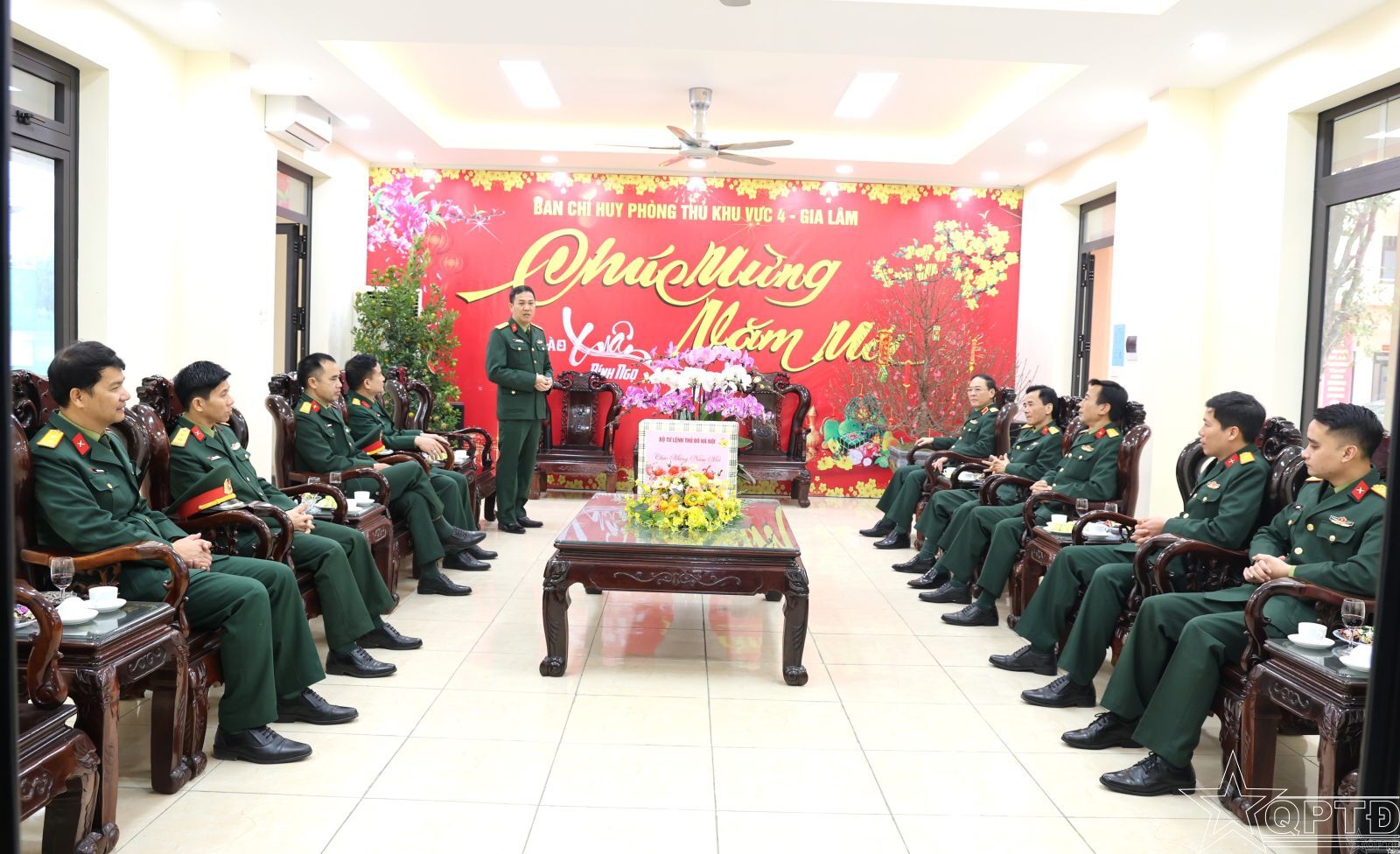 Thay mặt đơn vị, Thượng tá Nguyễn Trung Thuận, Chính ủy Ban Chỉ huy phòng thủ khu vực 4- Gia Lâm đã báo cáo với đoàn công tác một số kết quả nổi bật trong thực hiện nhiệm vụ quân sự, quốc phòng năm 2025; công tác phối hợp với cấp ủy, chính quyền địa phương trong thực hiện chính sách hậu phương quân đội, thăm hỏi các gia đình chính sách, người có công và những gia đình có hoàn cảnh khó khăn trong dịp tết; tích cực chăm lo xây dựng tổ chức Đảng vững mạnh, đơn vị vững mạnh toàn diện “Mẫu mực, tiêu biểu”. Trong dịp Tết Nguyên đán Bính Ngọ 2026, đơn vị đã xây dựng và triển khai đầy đủ các phương án, quân số trực đảm bảo sẵn sàng chiến đấu; thực hiện đầy đủ các chế độ, chính sách đối với cán bộ, chiến sĩ trong dịp Tết theo quy định. Đồng thời, đơn vị đã phối hợp với các xã, phường trên địa bàn tổ chức các trận địa bắn pháo hoa theo đúng kế hoạch được cấp trên giao.