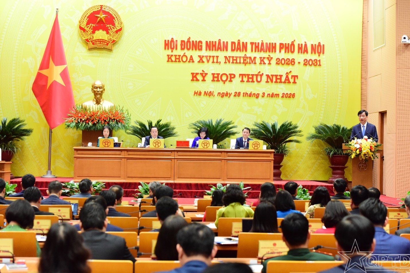 QPTĐ-Với tỷ lệ cử tri đi bầu đạt mức kỷ lục 99,57%, Kỳ họp thứ Nhất HĐND thành phố Hà Nội khóa XVII (nhiệm kỳ 2026-2031) đã chính thức xác nhận tư cách 124 đại biểu, những người mang theo kỳ vọng của hơn 6 triệu cử tri Thủ đô. Phát biểu chỉ đạo kỳ họp, Bí thư Thành ủy Nguyễn Duy Ngọc nhấn mạnh: Thành phố đang quyết liệt triển khai các chương trình hành động thực hiện Nghị quyết Đại hội Đảng lần thứ XIV và Đại hội Đảng bộ Thành phố lần thứ XVIII. Trọng tâm là bám sát 4 trục xuyên suốt từ Thành phố đến cơ sở, nhằm hiện thực hóa 'bộ ba trụ cột': Thể chế - Quy hoạch - Mô hình phát triển mới, dựa trên nền tảng chiến lược từ Nghị quyết số 02-NQ/TW của Bộ Chính trị.