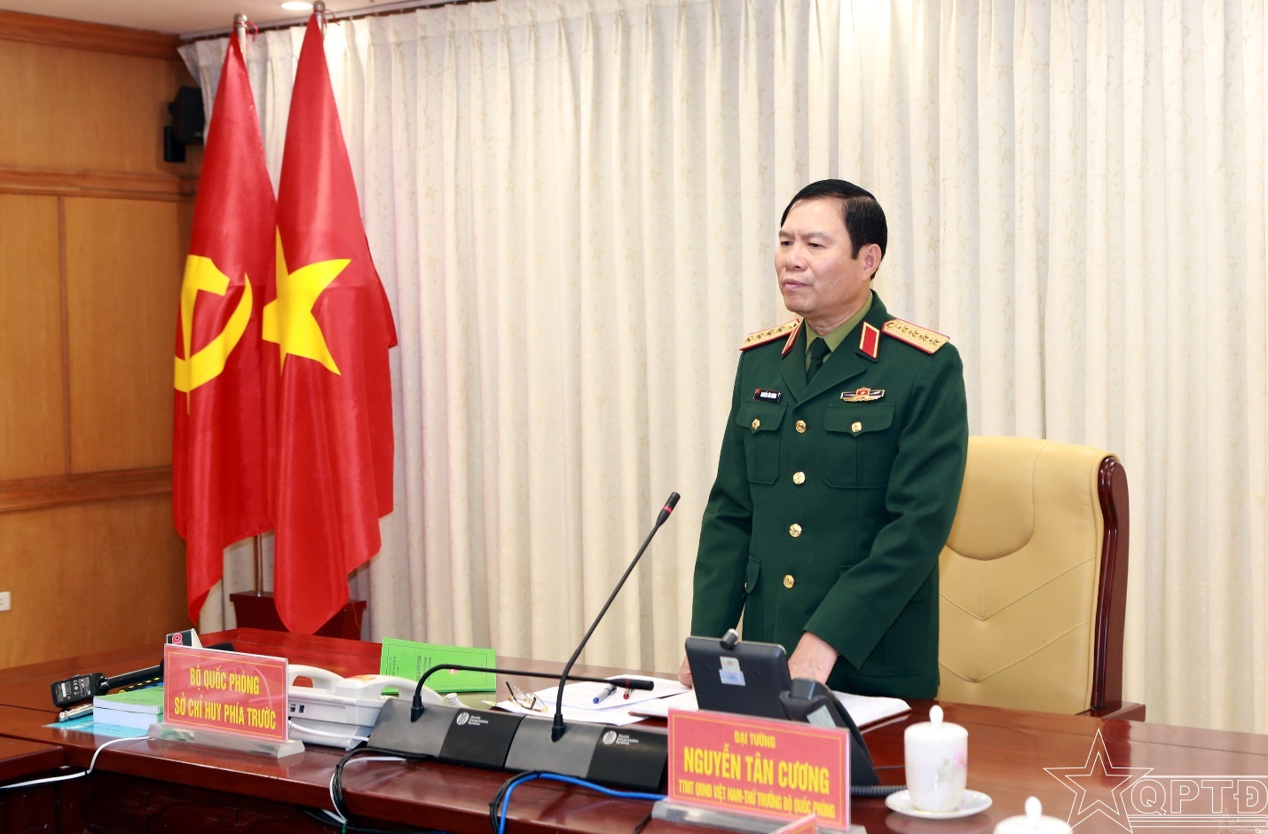 Đại tướng Nguyễn Tân Cương, Ủy viên Trung ương Đảng, Tổng Tham mưu trưởng Quân đội nhân dân Việt Nam, Thứ trưởng Bộ Quốc phòng phát biểu kết luận hội nghị.