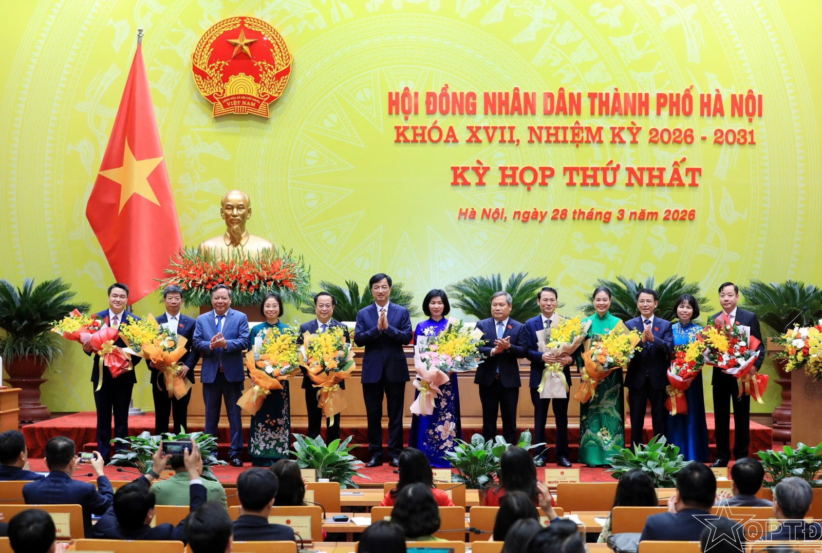 QPTĐ-Tại kỳ họp thứ Nhất, HĐND thành phố Hà Nội khóa XVII, nhiệm kỳ 2026-2031 diễn ra sáng 28-3-2026, HĐND Thành phố tiến hành bầu các chức danh Chủ tịch, các Phó Chủ tịch HĐND, Trưởng các Ban của HĐND; bầu các chức danh Chủ tịch, các Phó Chủ tịch UBND và Ủy viên UBND Thành phố nhiệm kỳ 2026-2031. Tiếp đó, HĐND Thành phố cũng bầu Hội thẩm nhân dân Thành phố nhiệm kỳ 2026-2031 và nghe Ủy ban Mặt trận Tổ quốc Việt Nam thành phố Hà Nội báo cáo tổng hợp ý kiến, kiến nghị của cử tri trong cuộc bầu cử vừa qua.