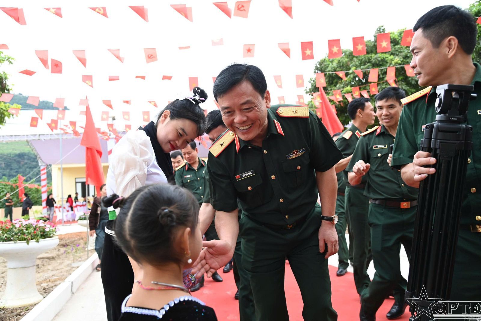 Trung tướng Phạm Đức Duyên, Bí thư Đảng ủy, Chính ủy Quân khu 2 phát biểu tại buổi khánh thành, bàn giao điểm trường.