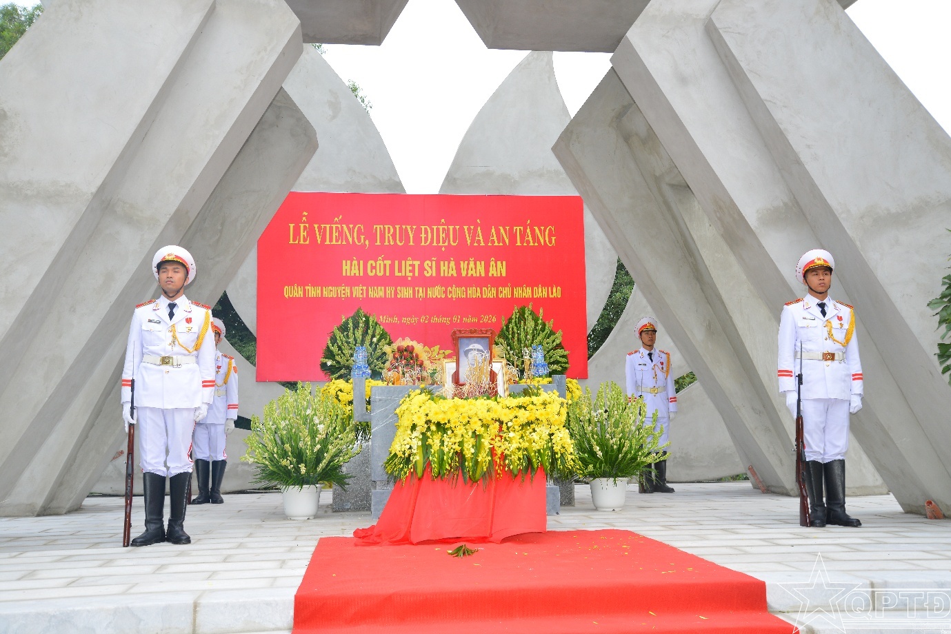 QPTĐ-Sáng 02/01, tại Nghĩa trang liệt sĩ Thanh Lâm, Đảng bộ, chính quyền, LLVT và nhân dân xã Quang Minh, thành phố Hà Nội đã tổ chức Lễ truy điệu và an táng hài cốt liệt sĩ Hà Văn Ân, người chiến sĩ cách mạng đã anh dũng hi sinh khi thực hiện nhiệm vụ quốc tế cao cả trên nước bạn Lào.