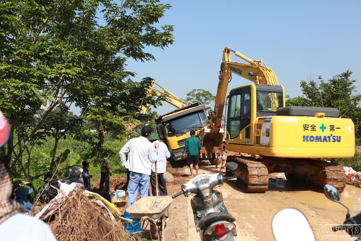 QPTĐ-Sáng 9-10, Đoàn công tác của thành phố Hà Nội do đồng chí Nguyễn Văn Phong, Phó Bí thư Thường trực Thành ủy Hà Nội làm Trưởng đoàn đã kiểm tra, chỉ đạo công tác bảo vệ đê, bảo đảm an toàn tính mạng, tài sản người dân trước lũ đặc biệt lớn tại địa bàn xã Đa Phúc và xã Trung Giã.