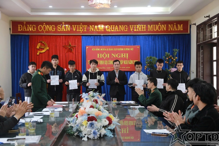 QPTĐ-Chiều 10-2, Hội đồng Nghĩa vụ quân sự phường Dương Nội, thành phố Hà Nội tổ chức Hội nghị giao quyết định cho 30 công dân đủ tiêu chuẩn nhập ngũ năm 2026.