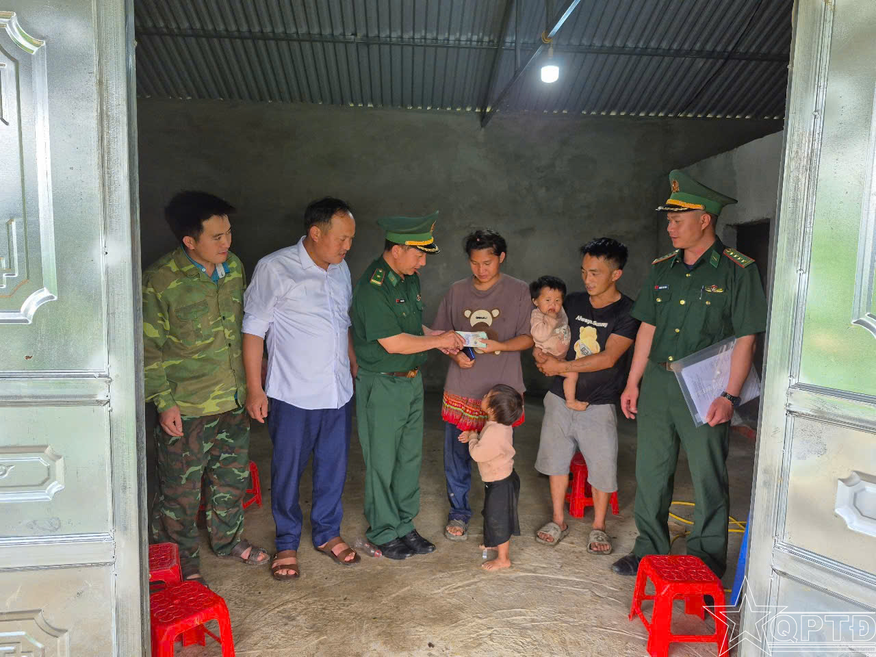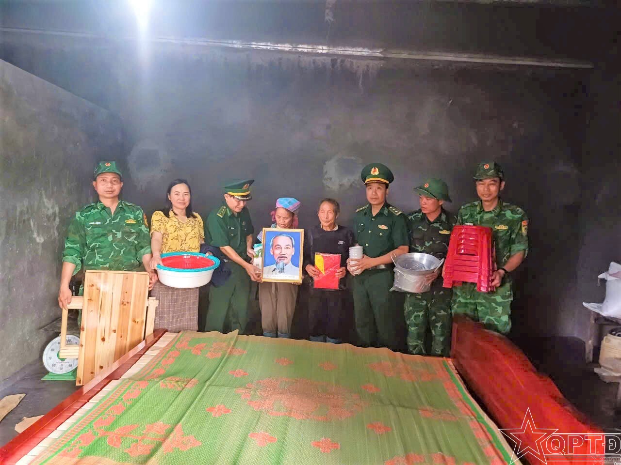 Ban Chỉ huy Đồn Biên phòng Dào San tặng quà gia đình ông Ma A Sang (bản Sin Chải 1).