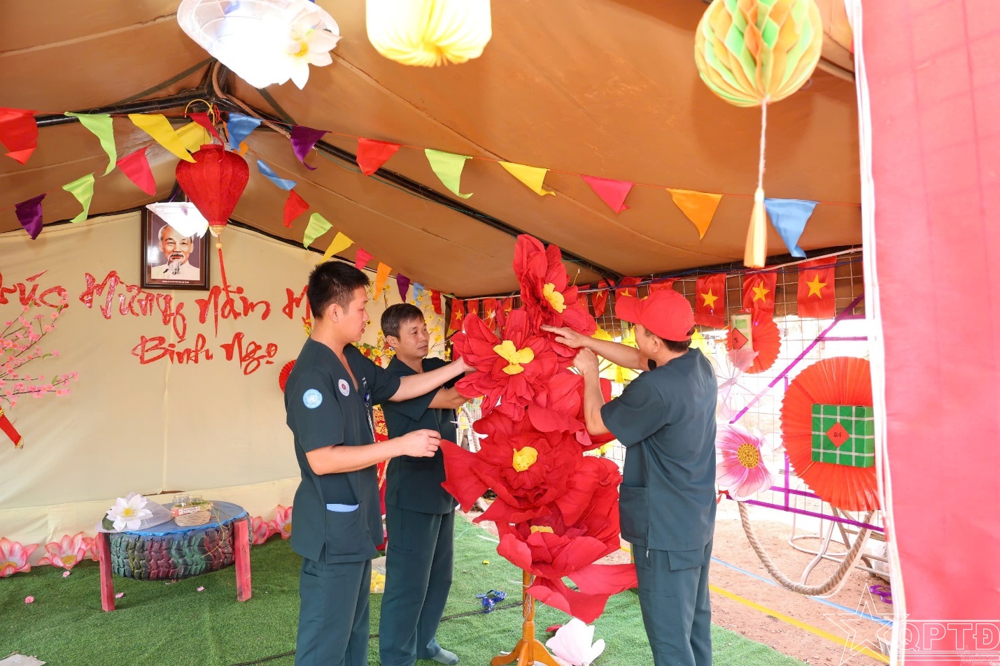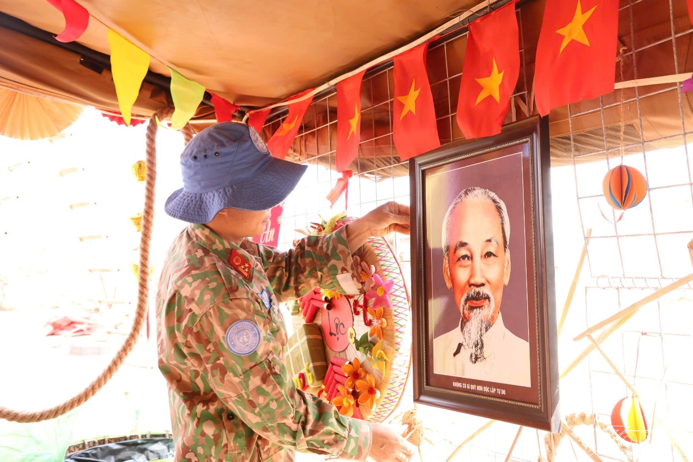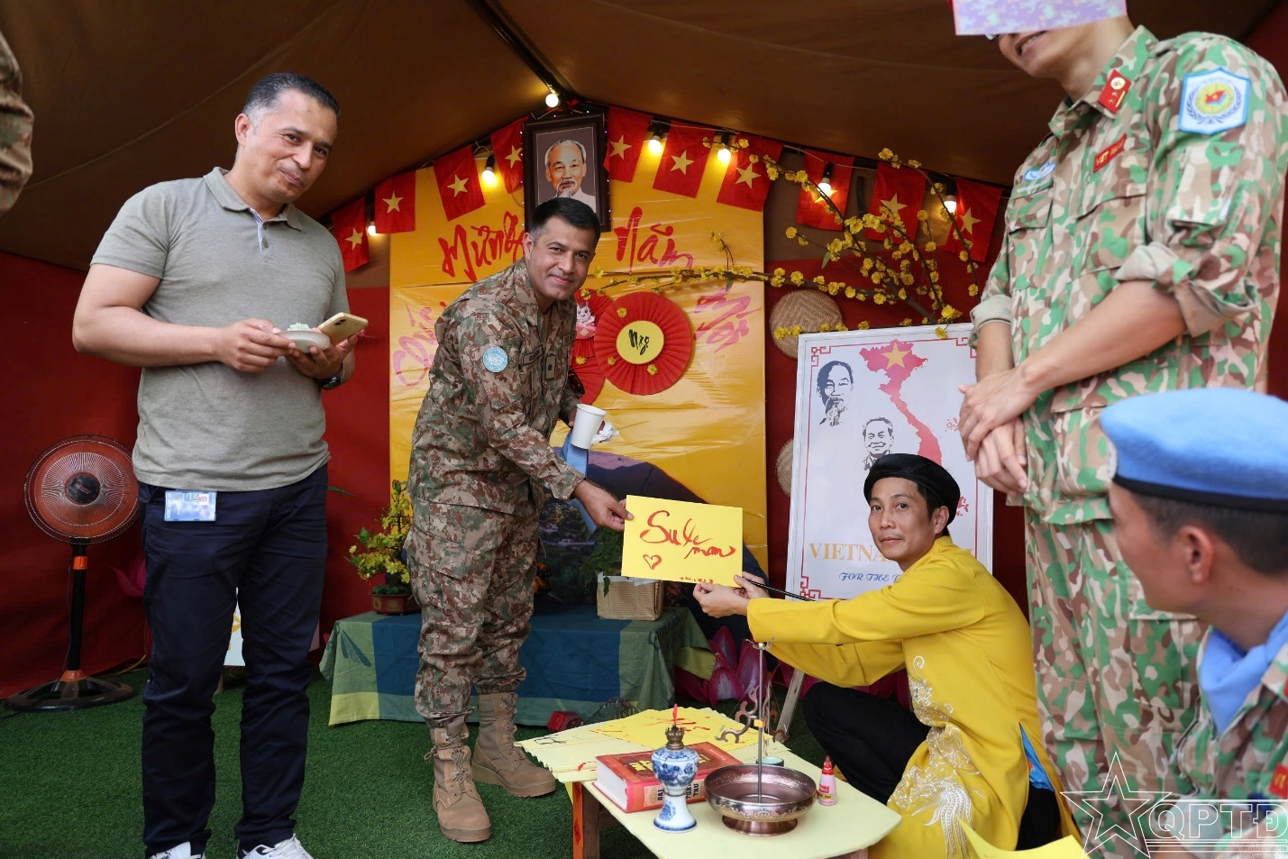 Những cành mai, cành đào trang trí giản dị; những gian hàng nhỏ của “Hội chợ Xuân”; những lời chúc bình an, sẻ chia giữa đồng đội và bạn bè quốc tế… tất cả hòa quyện, tạo nên một “không gian Tết Việt” giữa vùng đất còn nhiều bất ổn.