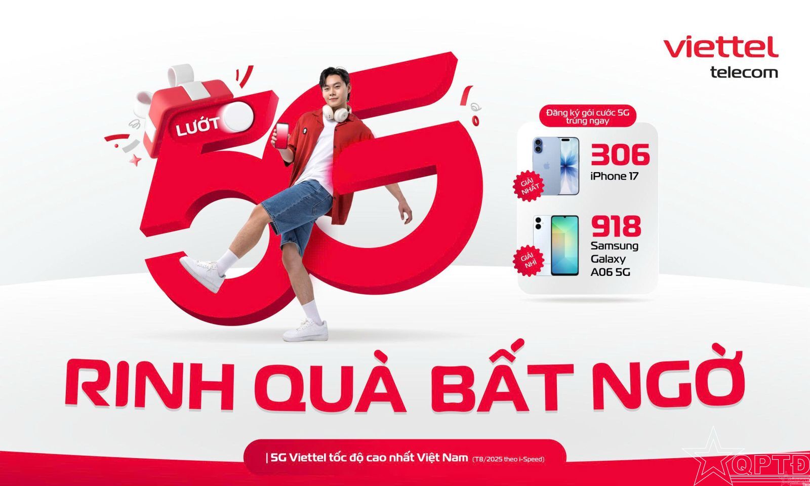 QPTĐ-Từ nay đến hết ngày 31/12/2025, người dùng 5G Viettel có cơ hội trúng thưởng hơn 1.200 điện thoại iPhone 17 và Samsung Galaxy A06 5G. Ngày 02/10/2025, Tổng Công ty Viễn thông Viettel công bố chương trình quay số trúng thưởng mang tên “LƯỚT 5G – RINH QUÀ BẤT NGỜ”.