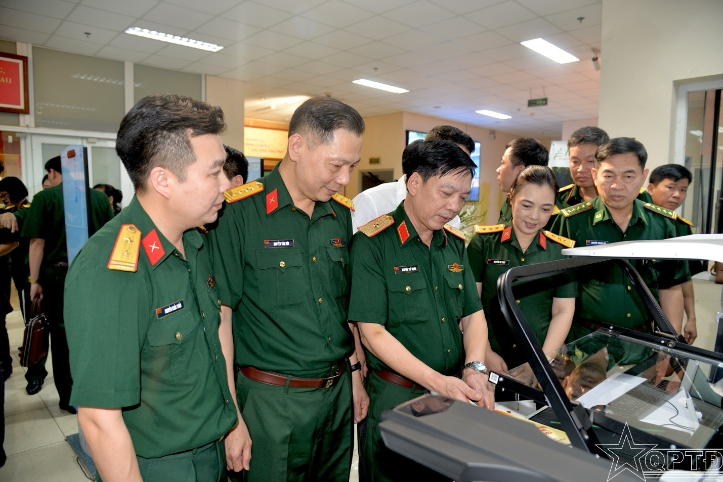 Các đại biểu tham quan các mô hình chuyển đổi số của Thư viện Quân đội.