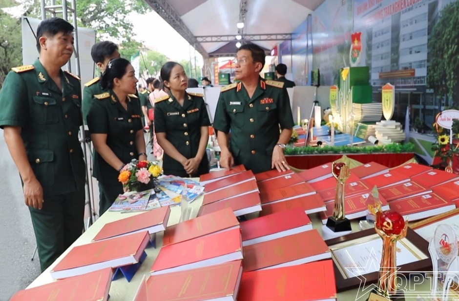 Thủ trưởng Tổng cục Chính trị tham quan khu trưng bày các đề tài khoa học của nhà trường.