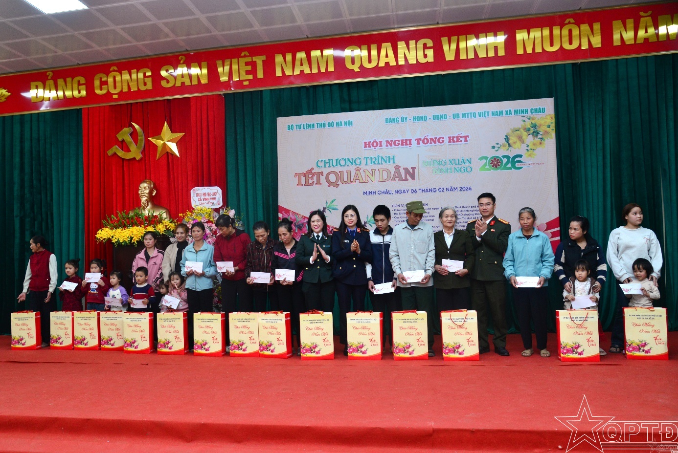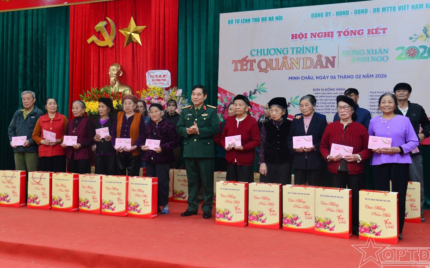 QPTĐ-Trong 5 ngày (từ ngày 3 đến 7/2), Bộ Tư lệnh Thủ đô Hà Nội đã cùng với các ban, ngành, đoàn thể địa phương xã Minh Châu, thành phố Hà Nội, các tổ chức chính trị- xã hội của Thủ đô và các doanh nghiệp, đơn vị quân đội đứng chân trên địa bàn đã tổ chức chương trình “Tết Quân dân” nhân dịp Tết Bính Ngọ năm 2026 với nhiều hoạt động có ý nghĩa thiết thực.