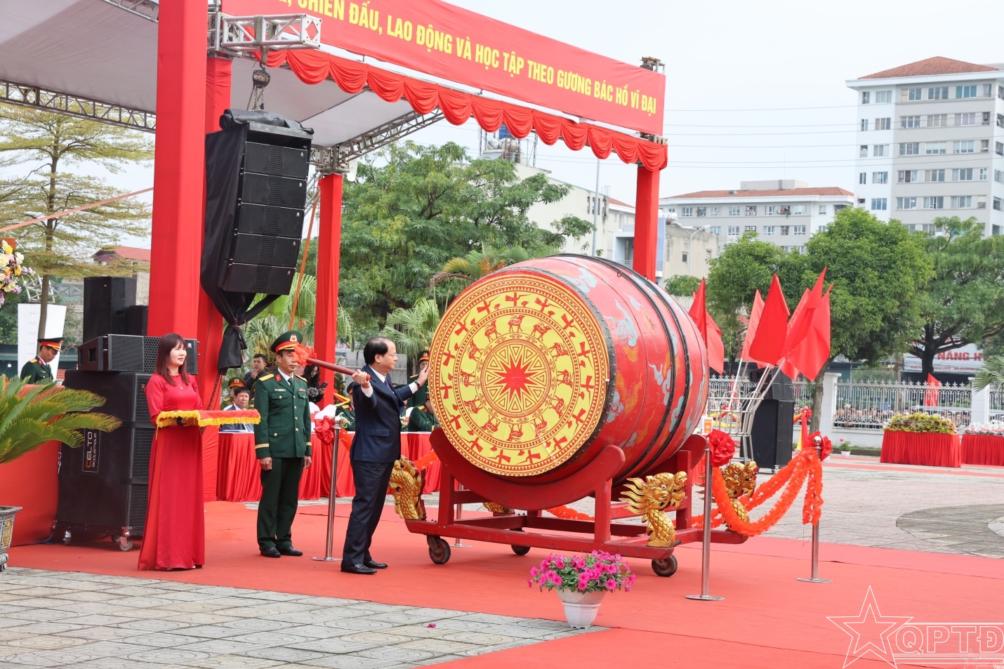 Lãnh đạo Thành phố thắp lửa truyền thống và đánh trống hội giao quân.