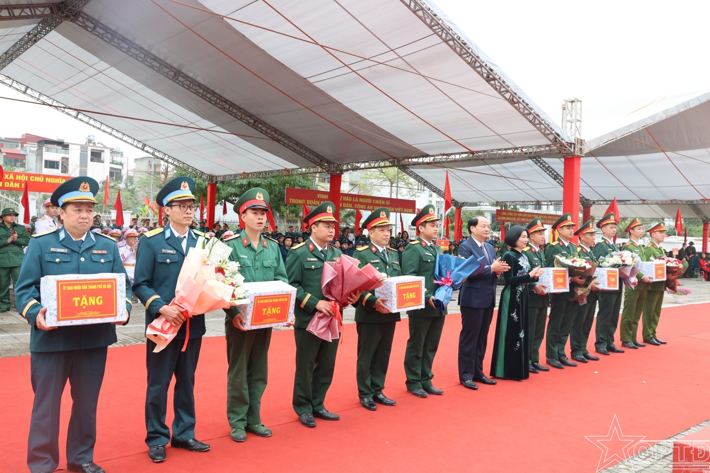Lãnh đạo Thành phố tặng quà cho các đơn vị nhận quân.