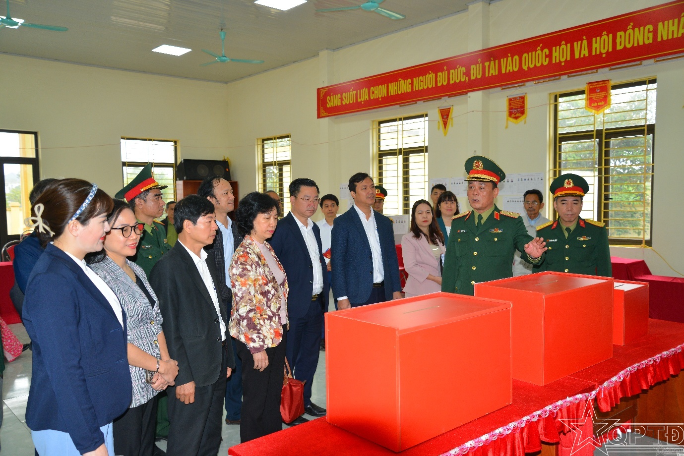 Đoàn công tác kiểm tra thực tế điểm bỏ phiếu của xã Vật Lại.