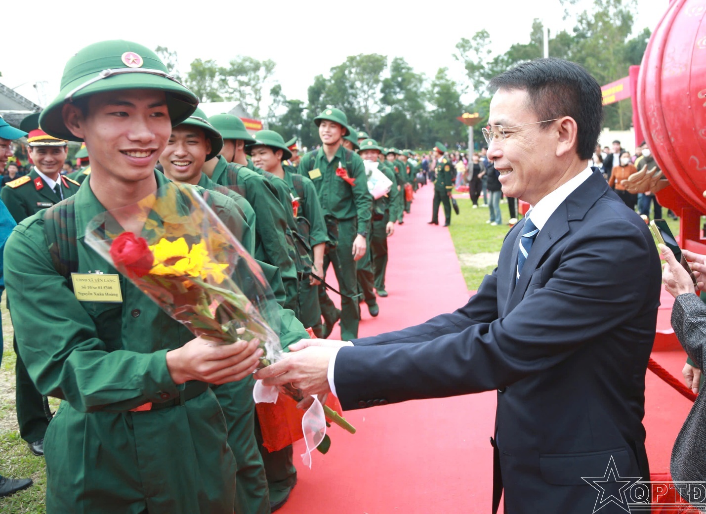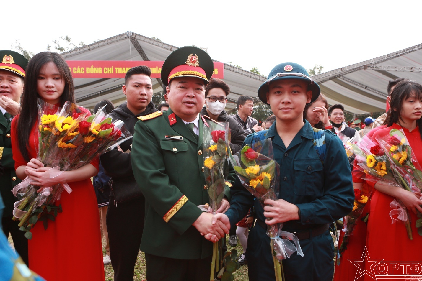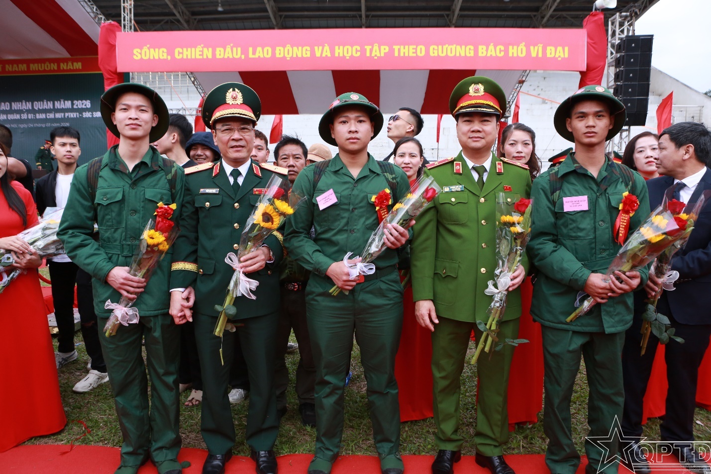 Tặng hoa chúc mừng các thanh niên lên đường nhập ngũ năm 2026.