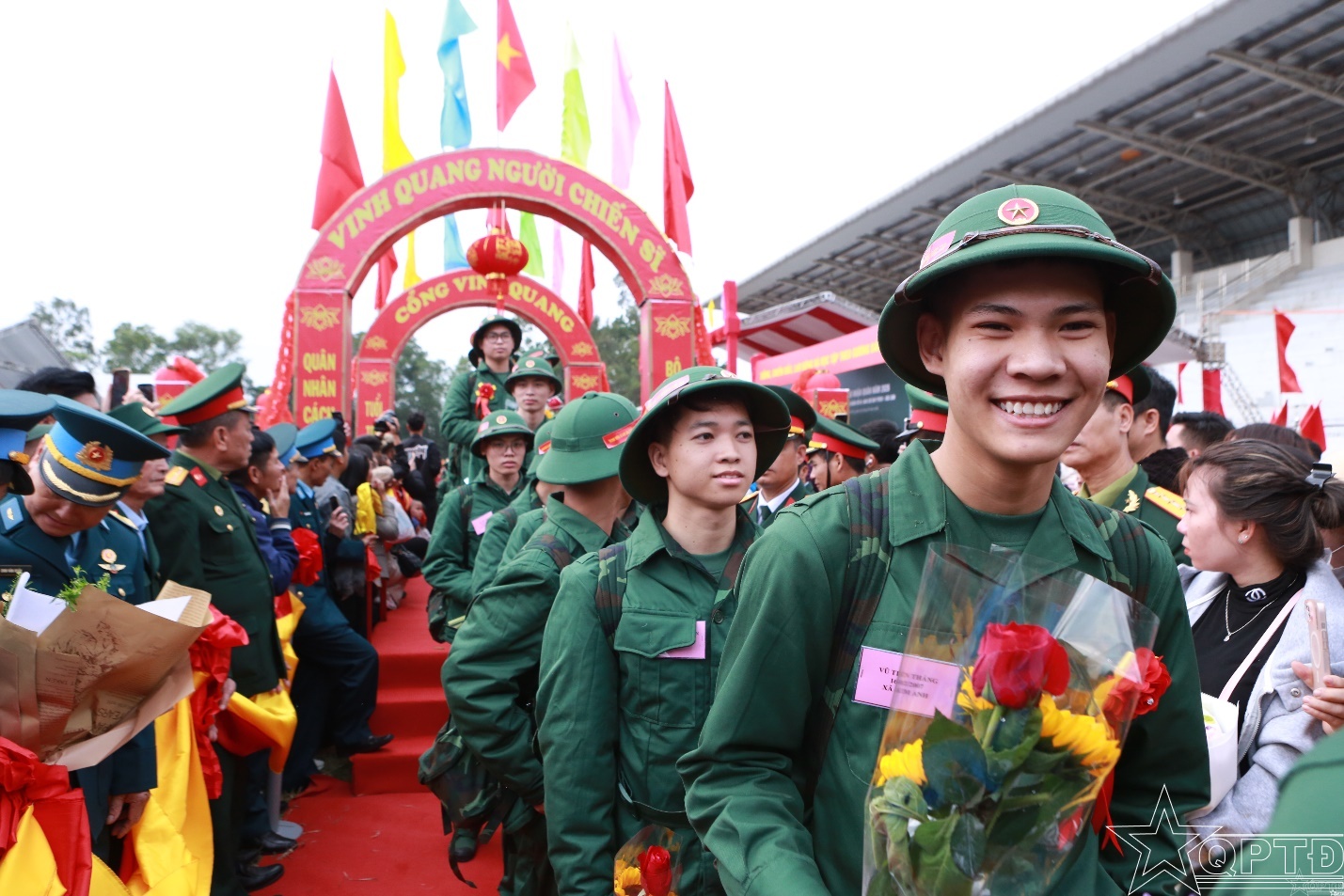 Không khí nô nức, vui tươi lên đường thực hiện nghĩa vụ thiêng liêng với Tổ quốc của các tân binh.
