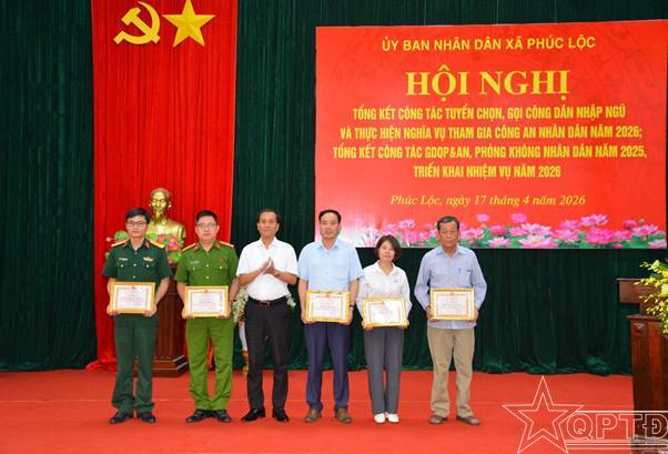 Tại Hội nghị, UBND xã Phúc Lộc đã tặng Giấy khen cho 5 tập thể và 20 cá nhân vì đã thực hiện tốt công tác tuyển chọn, gọi công dân nhập ngũ và thực hiện nghĩa vụ tham gia Công an nhân dân năm 2026.