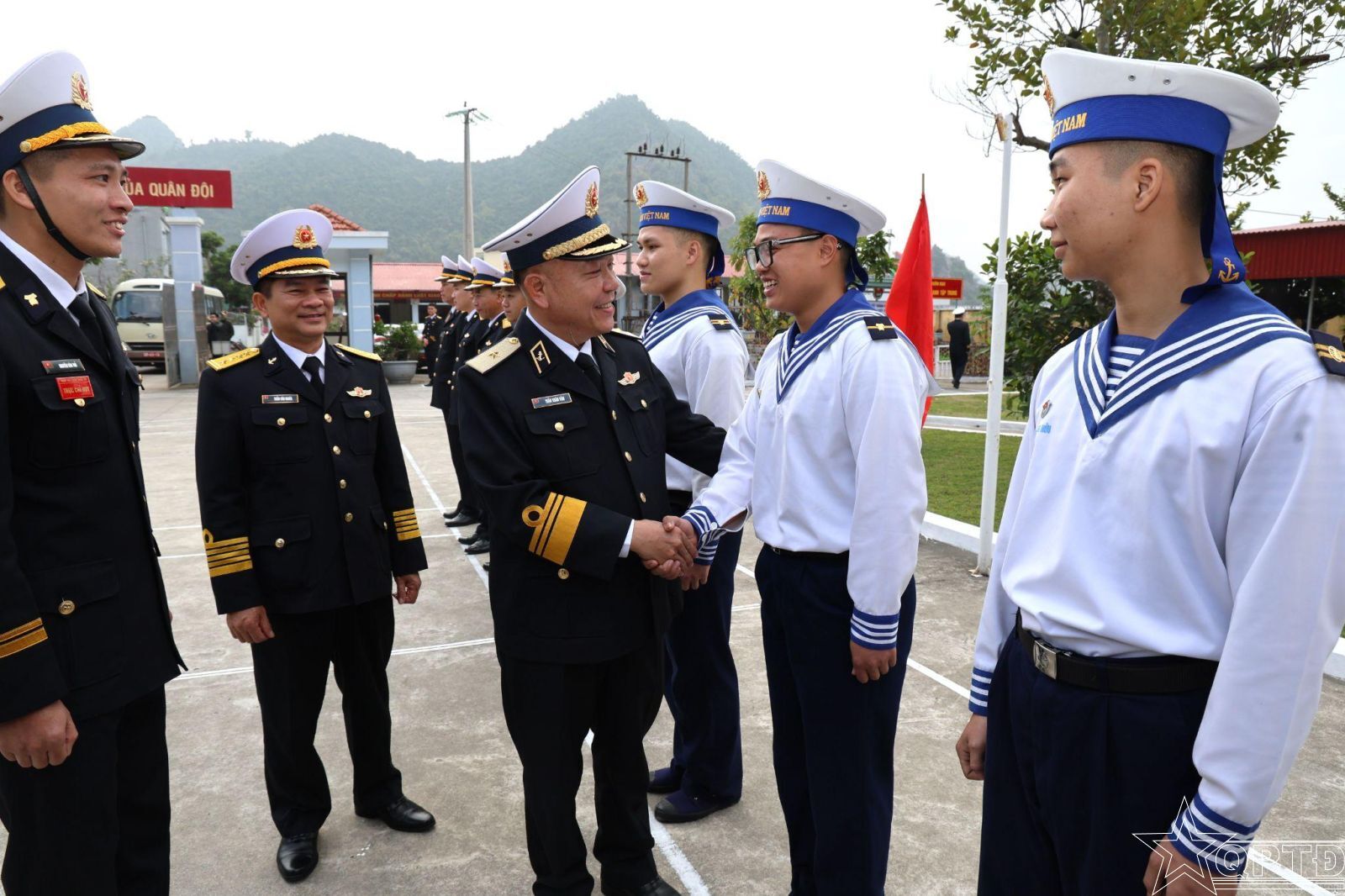 Chuẩn Đô đốc Trần Xuân Văn, Bí thư Đảng ủy, Chính ủy Vùng 1 Hải quân, động viên cán bộ, chiến sĩ trực Tết tại Trạm radar 495 (đặc khu Cát Hải).