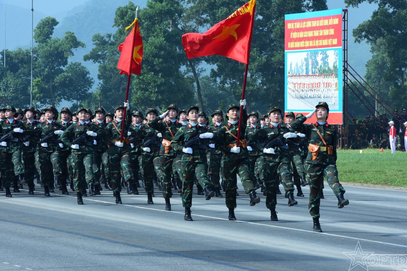 Nữ quân nhân Bộ Tư lệnh Thủ đô rạng rỡ, trang nghiêm trong Khối nghi trượng kỷ niệm 80 năm ngày thành lập nước (A80).